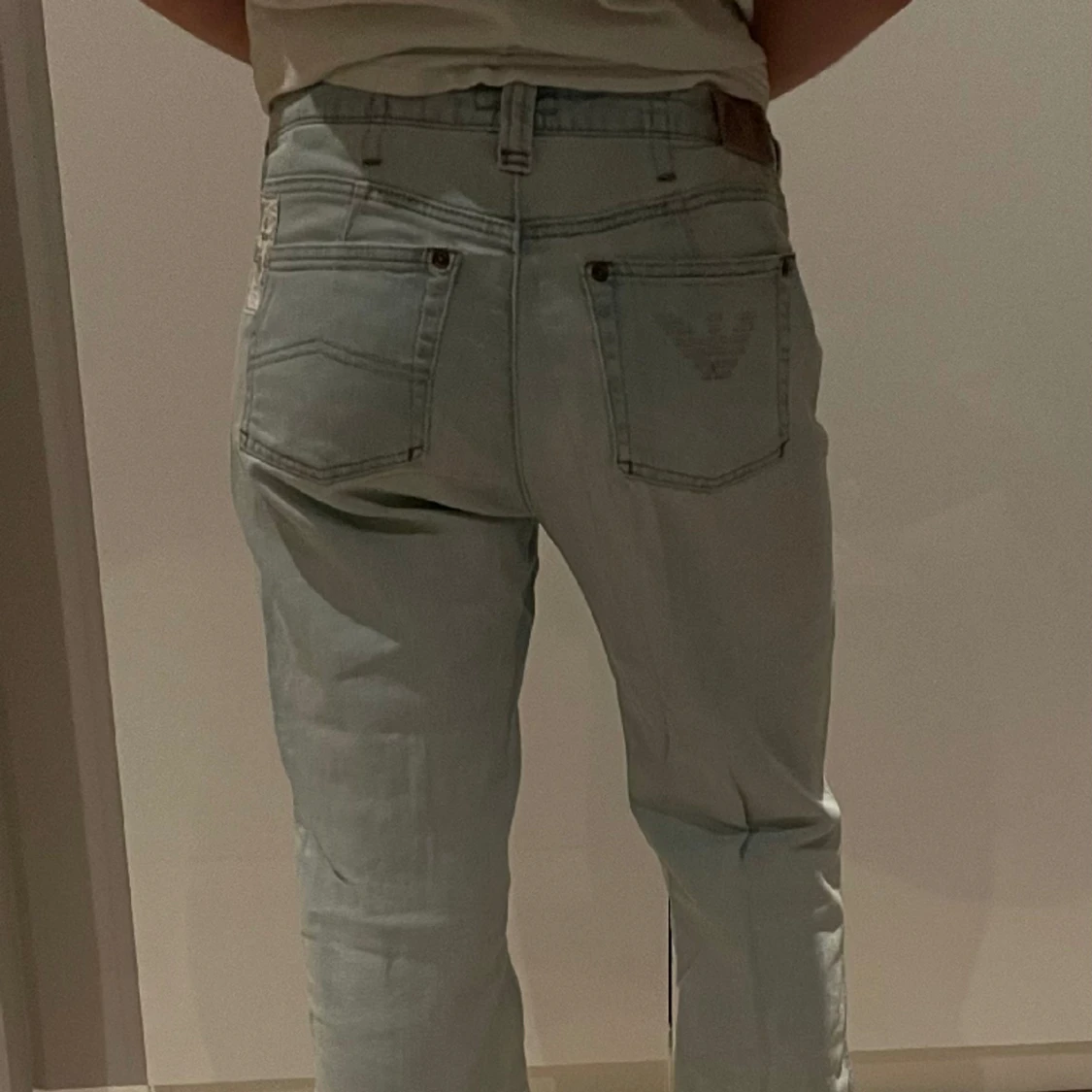 Skitsnygga lågmidjade och lite baggy jeans från Armani. De är lagade med en lapp (andra bilden). Annars i bra skick.