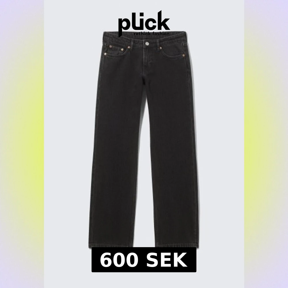 Snygga svarta jeans med klassisk femficksdesign och raka ben. Jeansen har knapp och dragkedja framtill samt detaljer i silverfärgad metall. Perfekta för dig som gillar en enkel och stilren look.