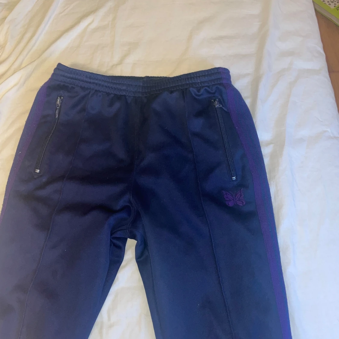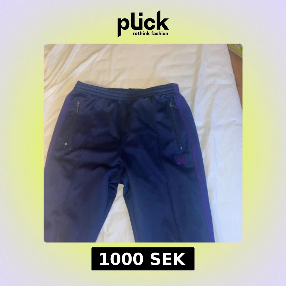 Säljer ett par needles trackpants i storlek S, passar både tjejer och killar. Straight i passformen. Använt skick, liten defekt på baksidan av byxorna (se bild 4) och även lite noppriga men går att fixa till ;). Säljer byxorna för att de Alldrig används längre och är för små. Vid minsta fråga, pris eller fler bilder, hojta till:)