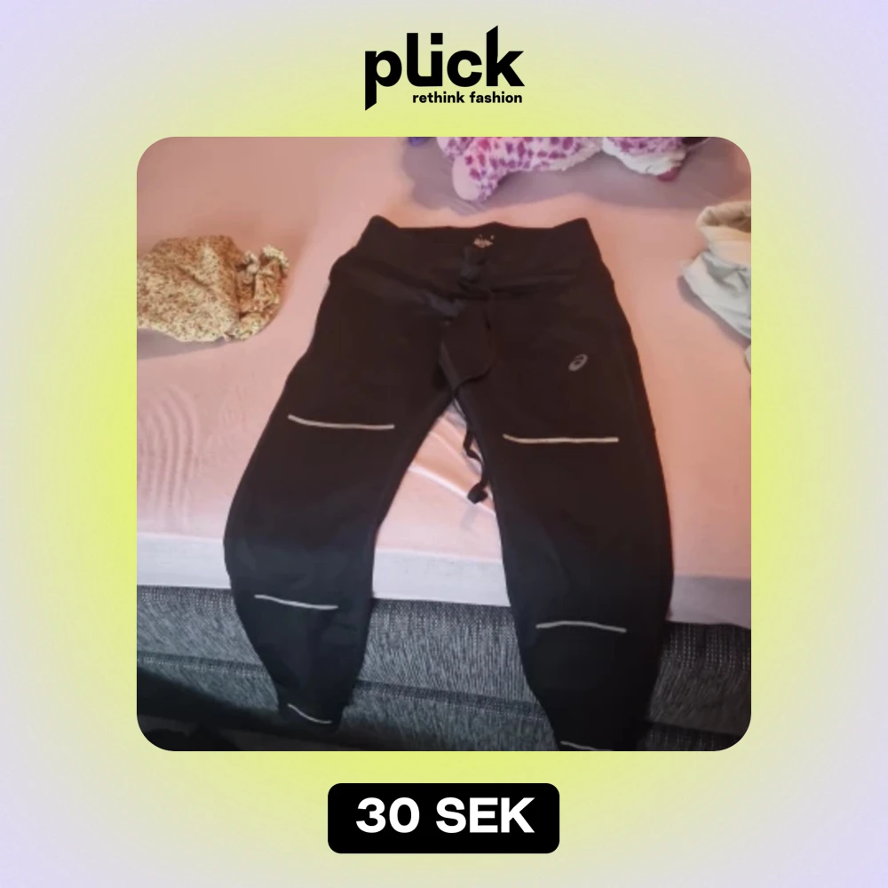 Säljer ett par svarta träningsbyxor från Asics i storlek S. De är perfekta för träning med sin bekväma passform och elastiska midja med snörning. Byxorna har en stilren design med diskreta loggor och reflekterande detaljer för extra synlighet.