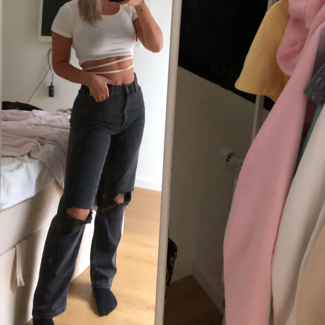Grå/svarta jeans från ASOS, jättebra skick, långa i modellen, stl m