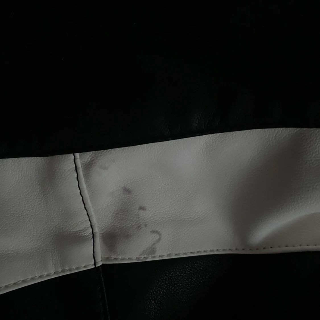 Biker byxor i skinnimitation från asos, i rätt bra skick förutom en liten fläck på det vita bak (se bild). Storleken är 36 men passar bättre för en med 34, då det är lite små för mig. Katt i hemmet. Kan mötas upp i Uddevalla om ej så står köparen för frakten.