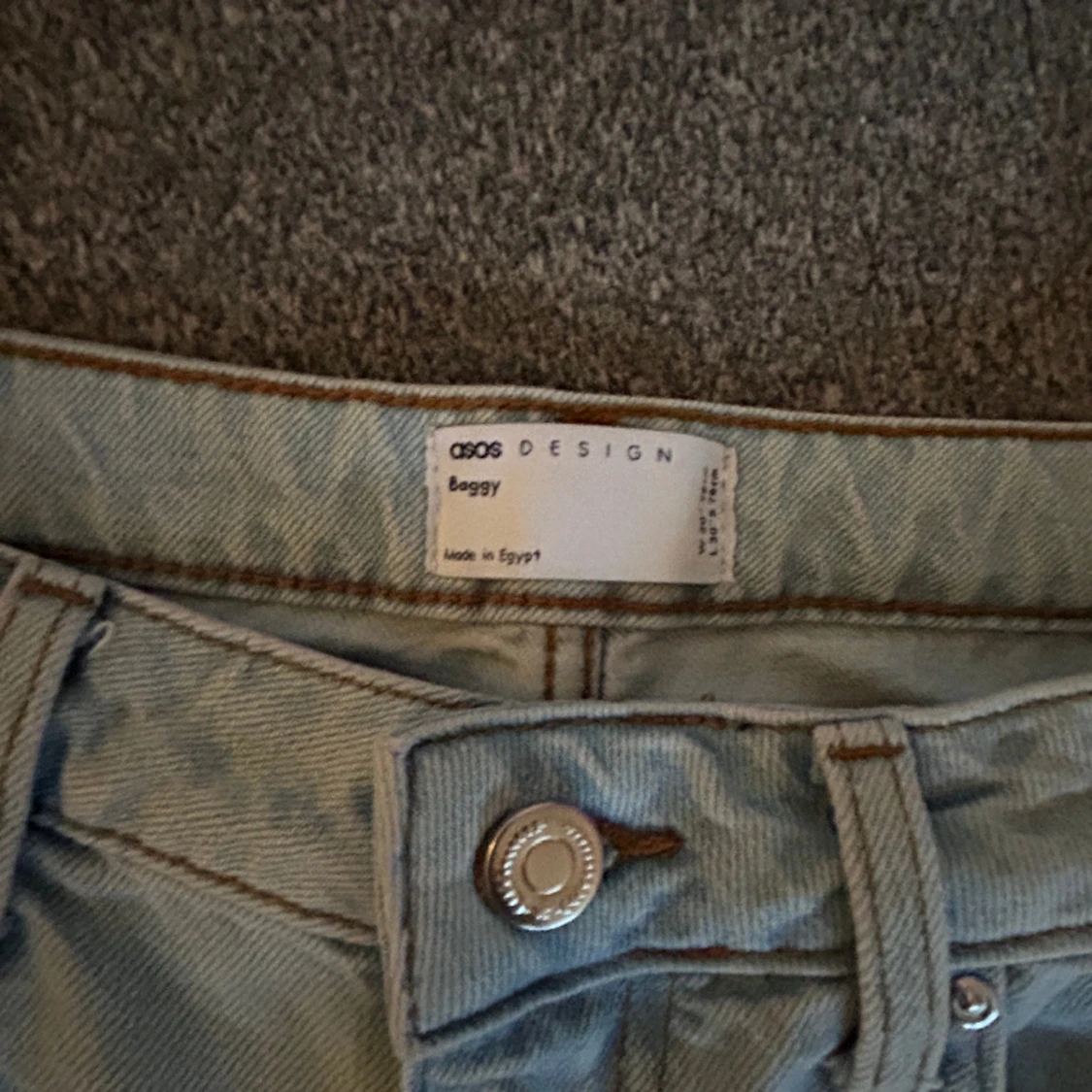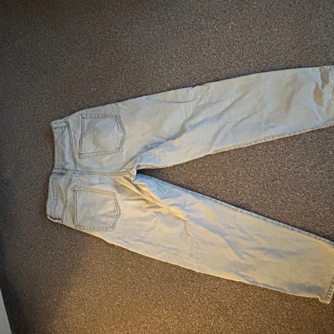 Säljer dessa ljusblåa baggy jeans. Passar ca w.30 och length 31-32. Mycket bra skick, knappt använda.