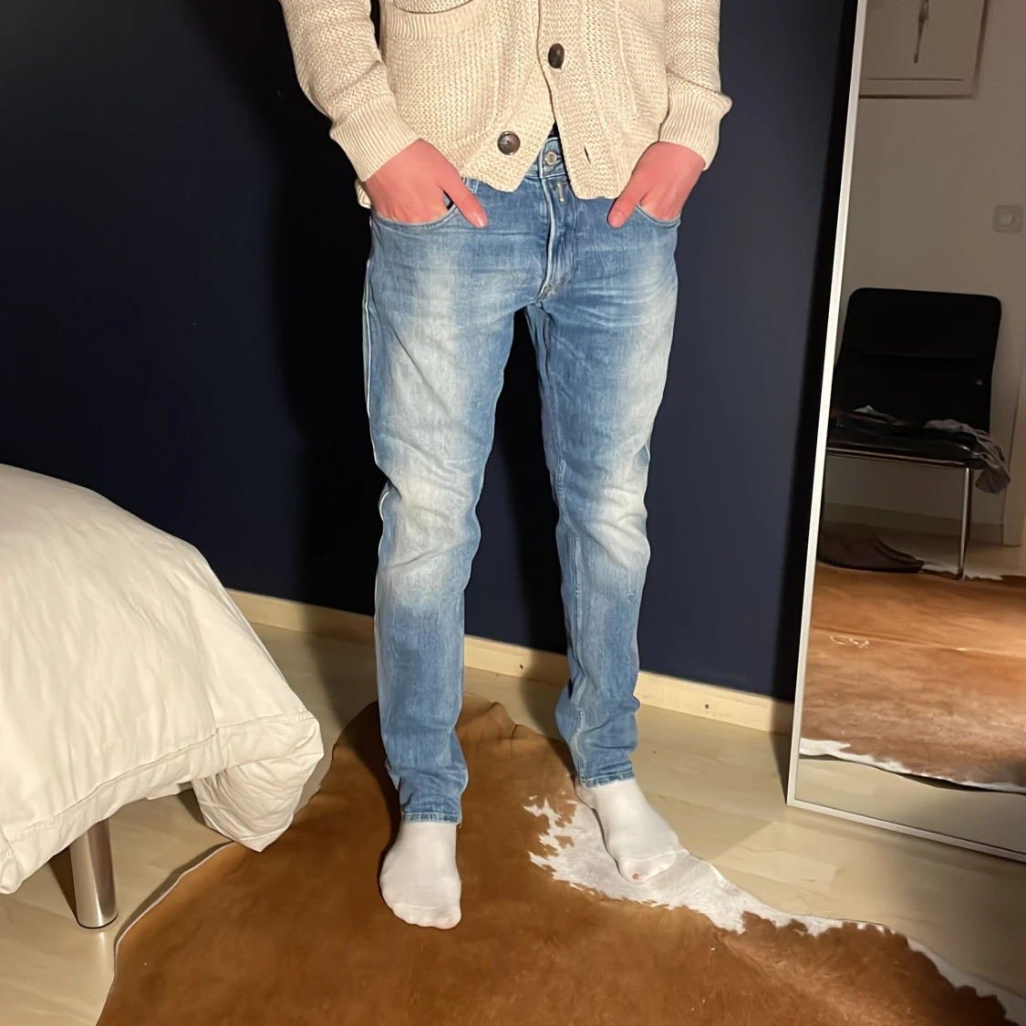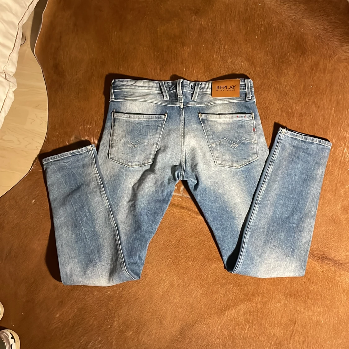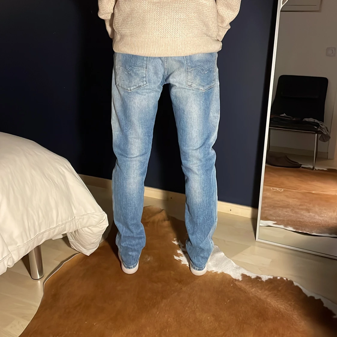 Snygga ljusblå jeans från Replay med en klassisk femficksdesign. De har en normal passform och är perfekta för en avslappnad stil. Jeansen har en dragkedja och knapp framtill. Modellen på bilden är 180 och väger 63 kilo. Jeansen är i gott skick utan några som helst defekter. Kom dm för fler bilder eller om du har frågor osv.🤗