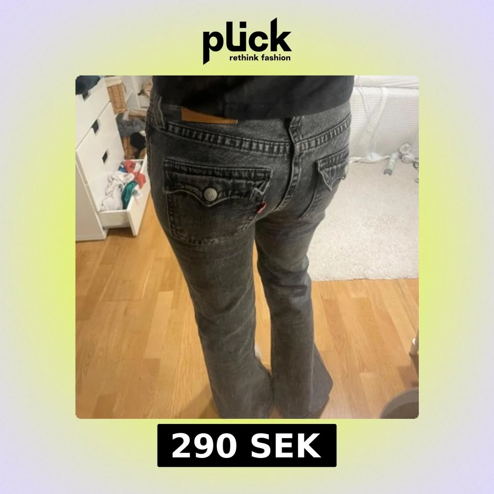 Levis jeans med en låg midja. Dom är i mycket bra skick förutom att det blivit ytterst lite spretig långt ner mot byxans slut se på bilden nedan. Säljer då dom tyvärr inte kommer till användning❤️