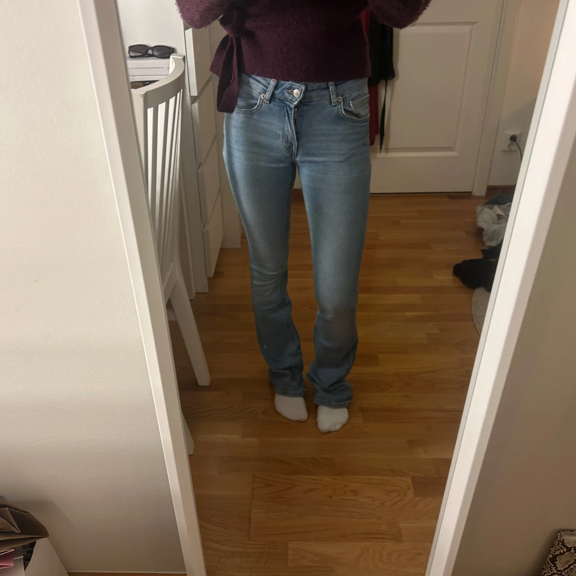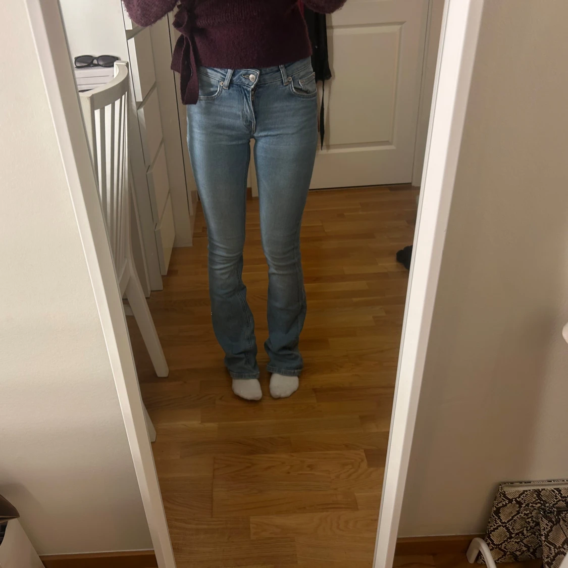 Säljer mina favorit Jeans i midwaist format, är i ett stretchigt material! Har gått upp dom lite längst ner men annars inga andra defekter!