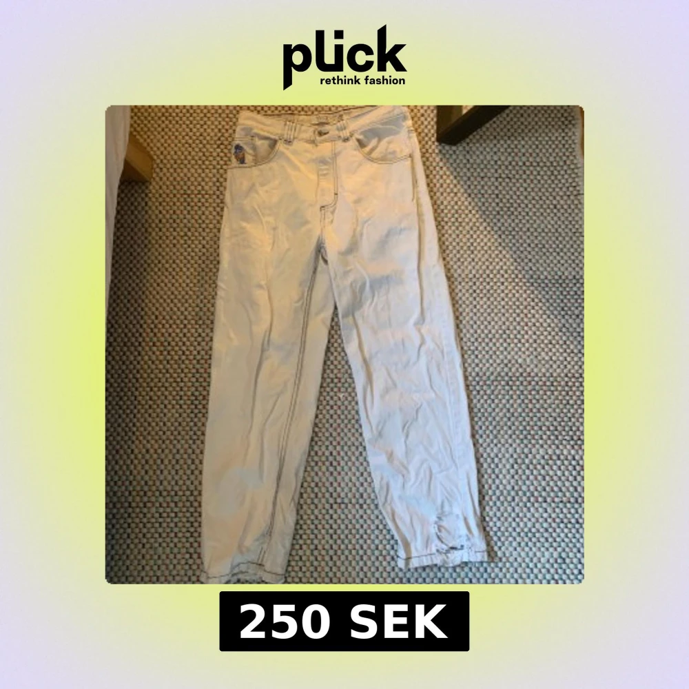 Vita 93 Denims jeans. Köpte dem för ett år sedan för 1200 kr från junkyard. Storlek 30/32. Har ett litet hål nere på benet men det går nog att sy, skick 8/10, därav priset.