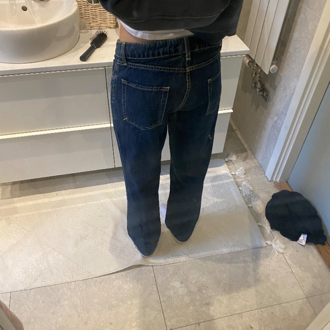 Skulle säga storlek M, det står storlek W32 L32 på jeansen. De har använts 1 gång sen jag köpte dem och är i bästa skick.