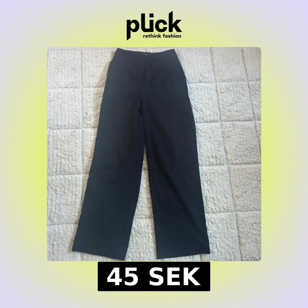 Svarta kostymbyxor som är baggy och mid waist. Byxorna stängs med knapp och dragkedja framtill. Klassisk och stilren look, perfekta till en snygg outfit.