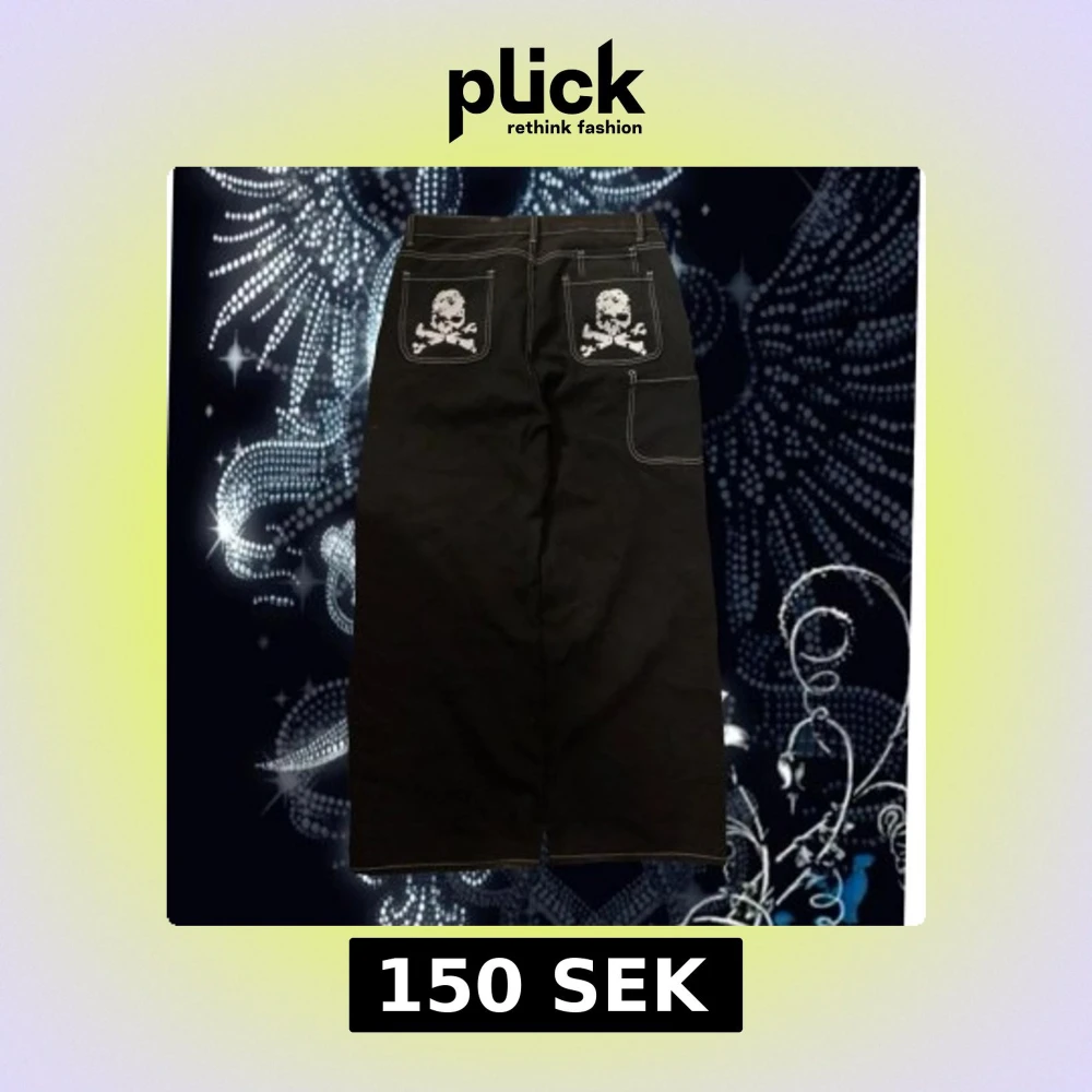 Baggy svarta jeans med dödskallar på, 150 kr inkl frakt, tar Swish 💥💥