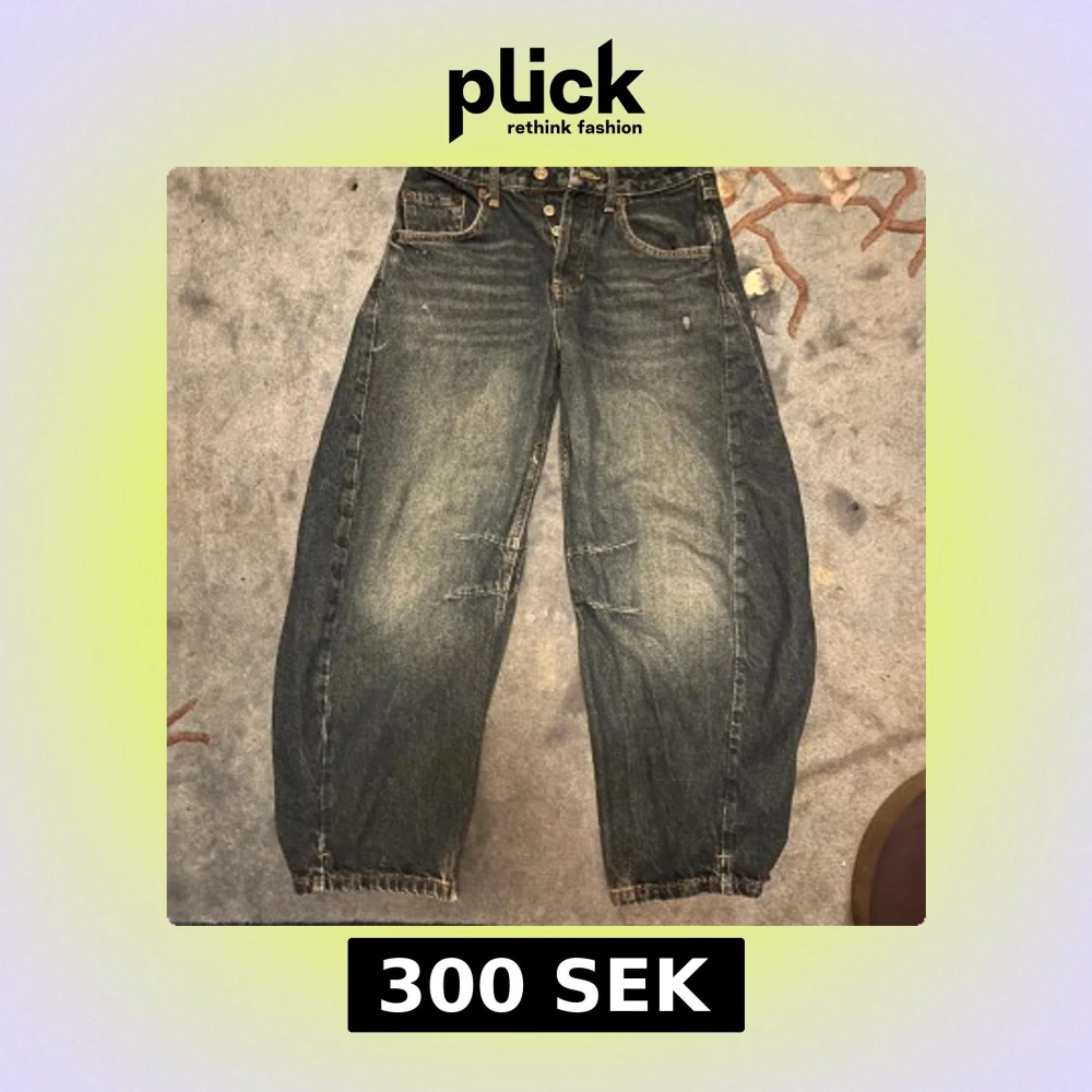 Baggy jeans från BDG Urban Outfitters i mörkblå tvätt med slitna detaljer och markerade sömmar över knäna. Klassisk femficksmodell med knappgylf och kontrastsömmar. Perfekt för dig som gillar en loose och avslappnad stil. ❗️rekommenderar om man är under 160cm lång❗️