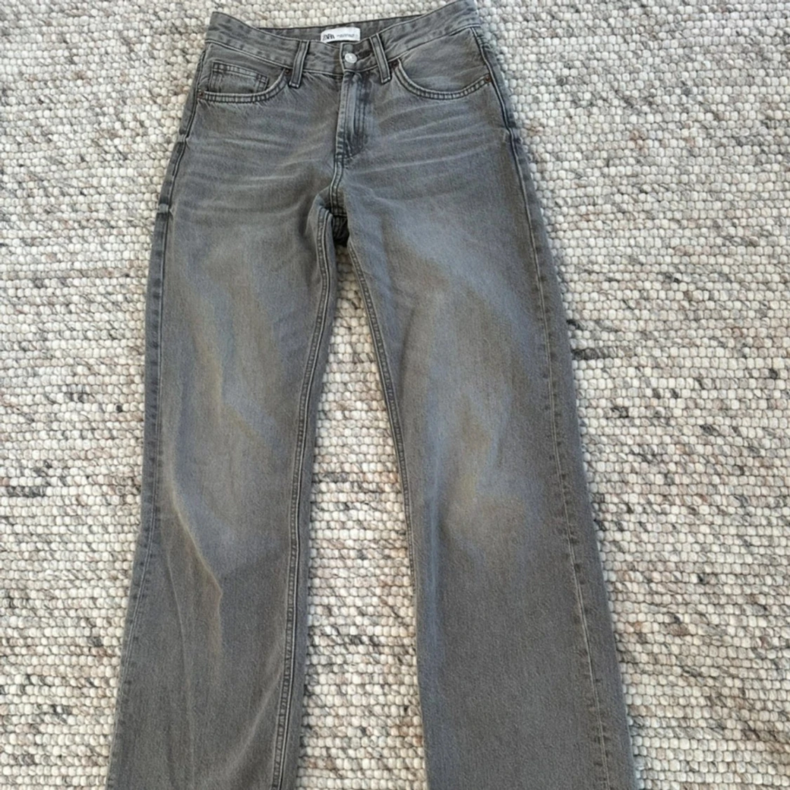 Hej!! Jag säljer dessa jättefina jeans från Zara med vida jeans och låg midja. Jag har de lite längre ner på höften för en mer baggy look. De är storlek 36 men skulle säga att de passar en xs-s. Midjemått: 36 cm, innerbenslängd: 83 cm. Tveka inge att skriva vid frågor och pris kan diskuteras🤗