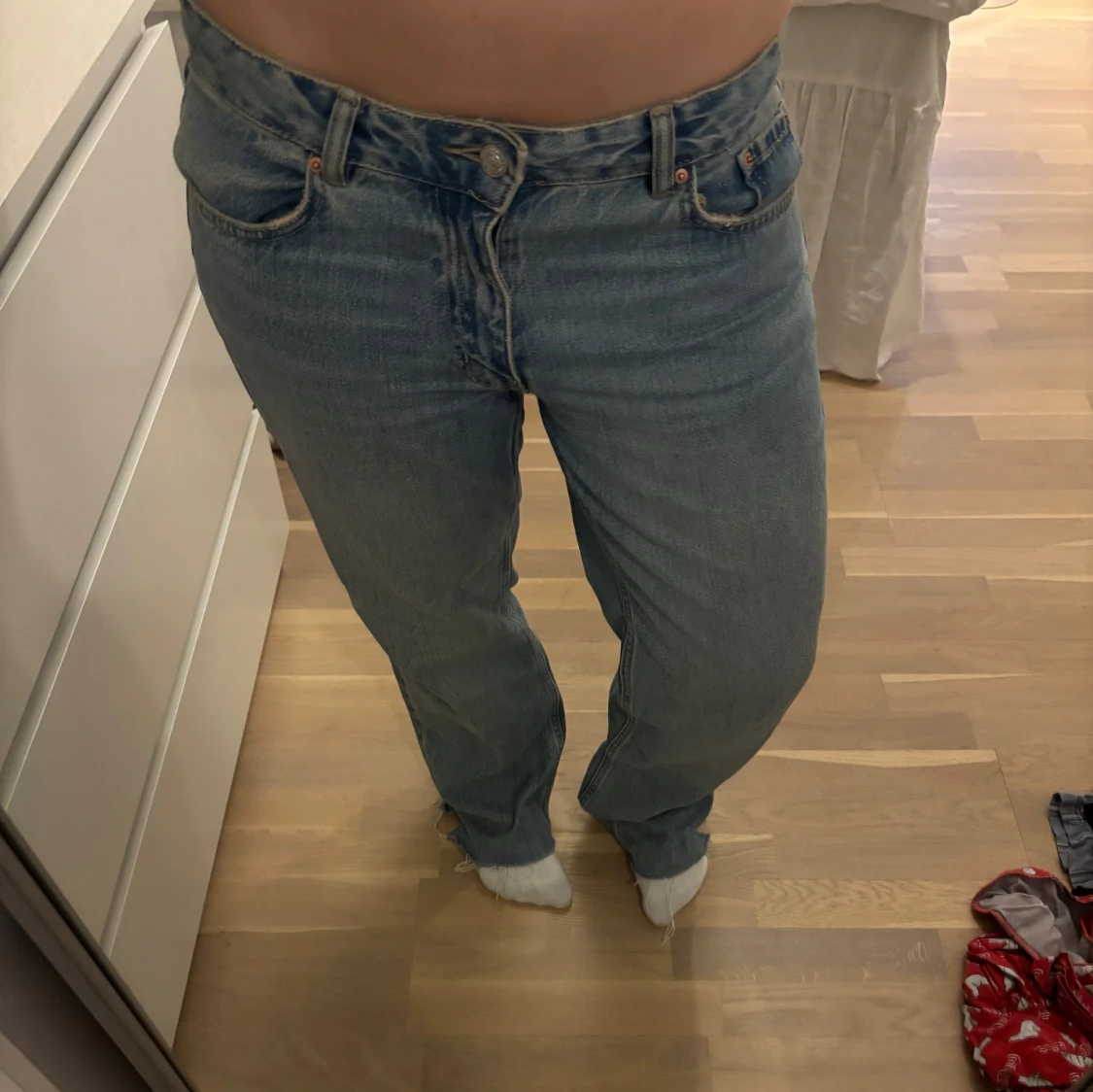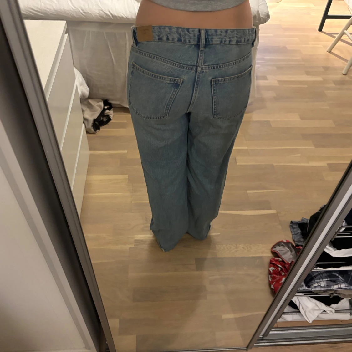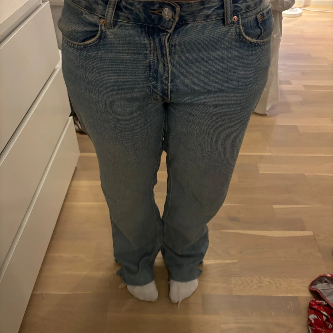 säljer pga kommer inte till användning. köpte för 500 på gina tricot för ett halv år sedan. raka pösiga byxor super snygga! har vanligtvis 36/38 så sitter pösigt på mig