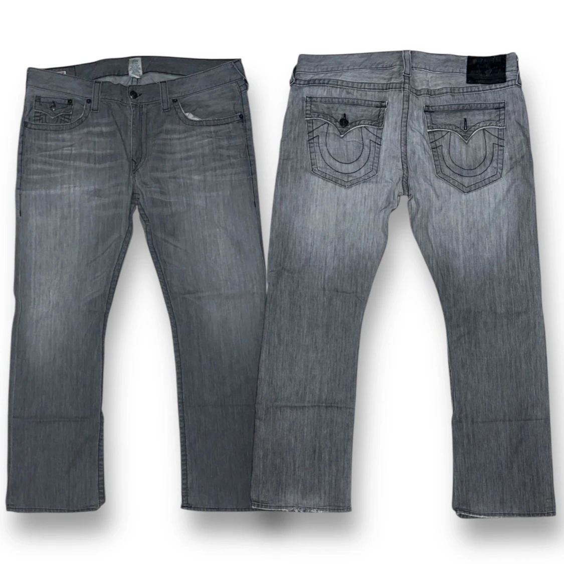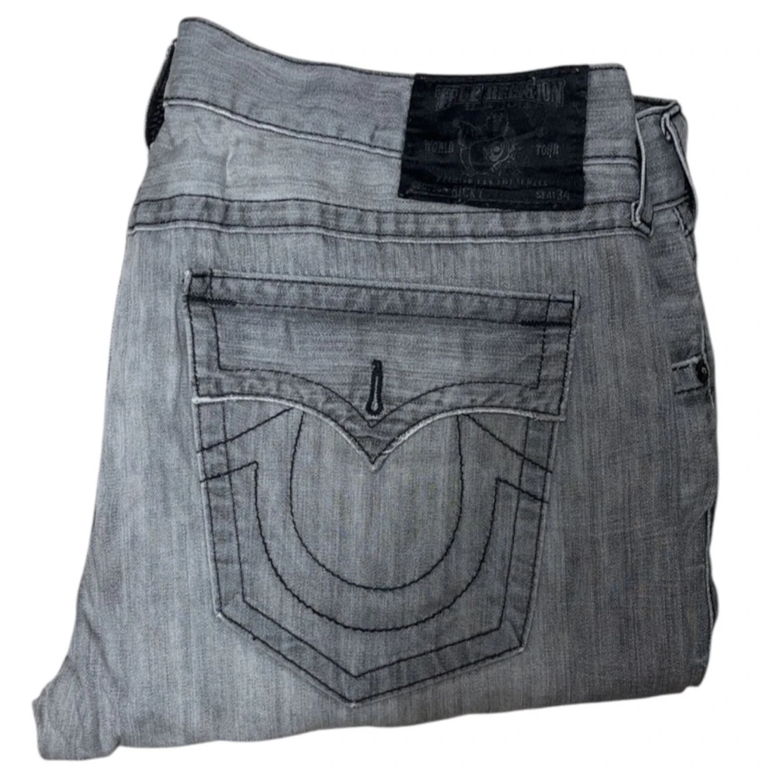 True Religion jeans Straight fit. W42. Saknar knapp på höger ficka. [Ytterbenslängd 118cm] [Innerbenslängd 89cm] [Midja 57cm] [Benöppning 26cm]