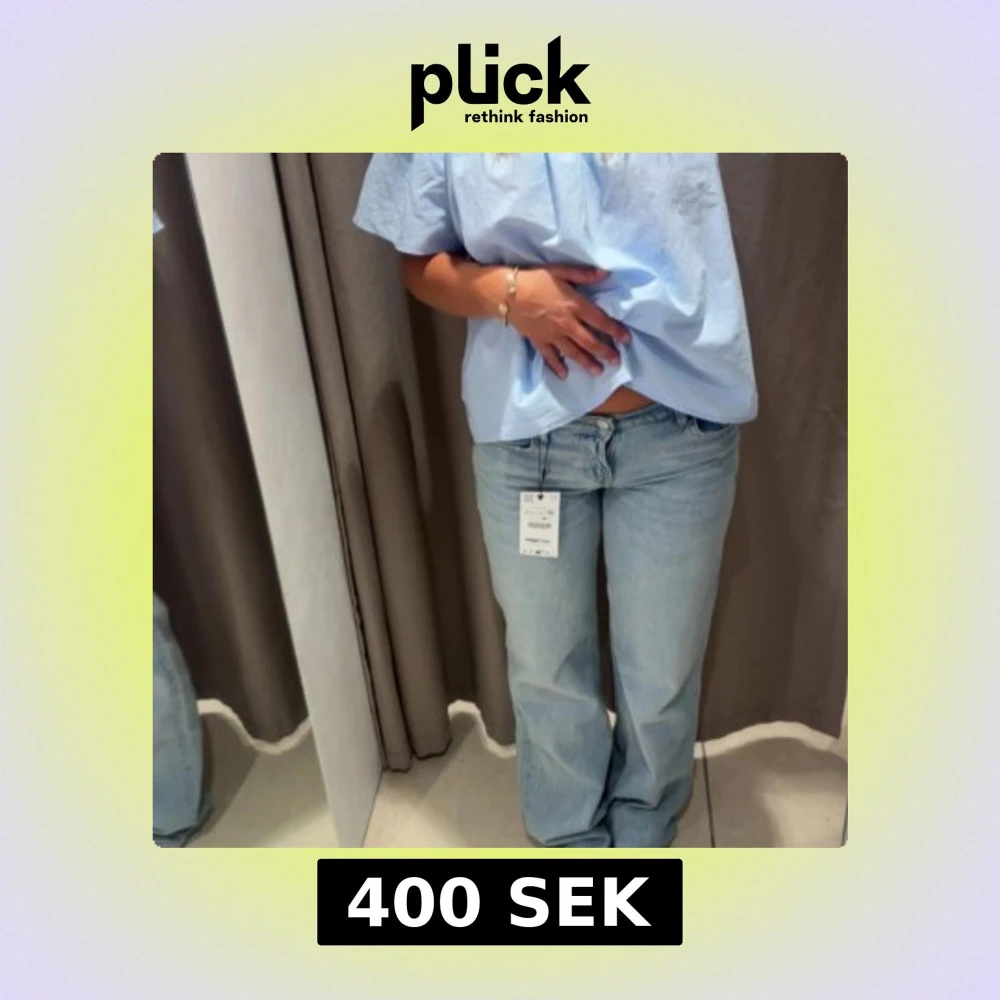 Ljusblåa jeans från Zara, har ett hål längst ner men dem är väldigt långa i benen så inget man tänker så mycket på!