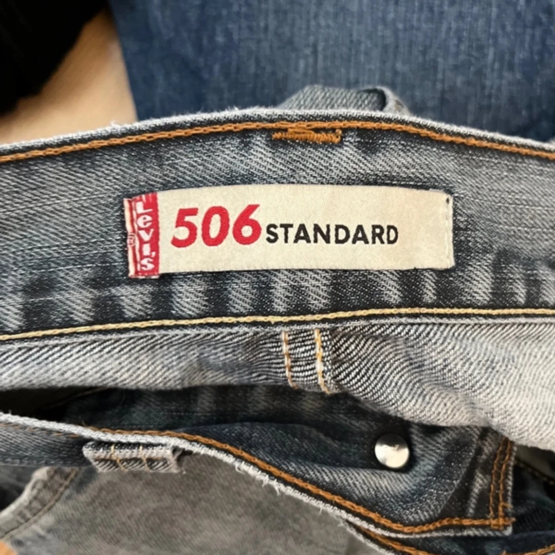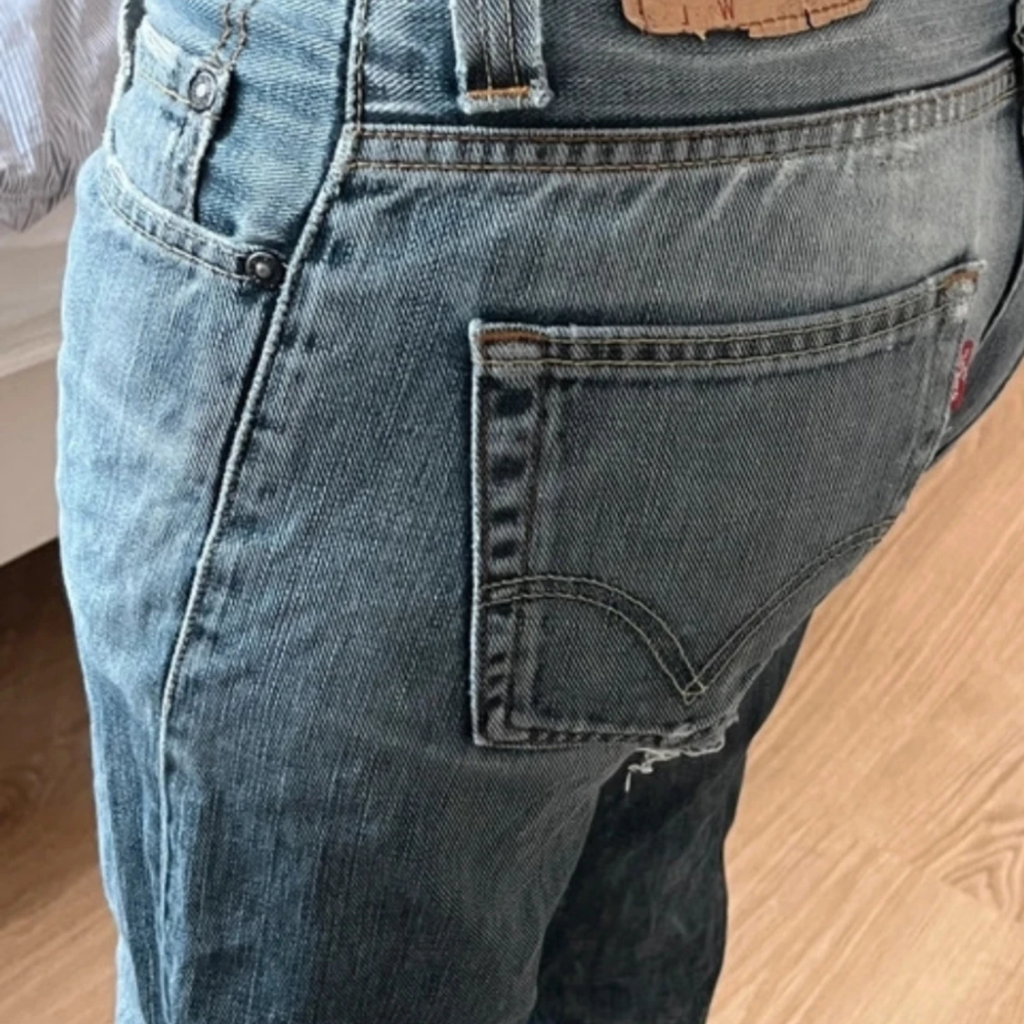 Baggy Levis jeans som är mid waist . Model 506. Slitningar på rumpan