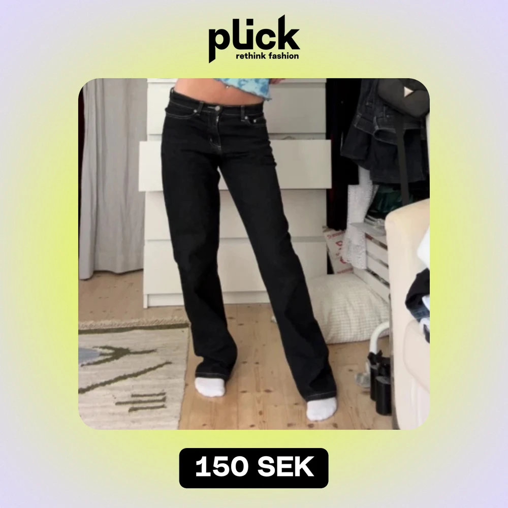 Skitsnygga baggy mörka jeans med vit sömn, står storlek 40 i dem men i referens sitter dem såhär på mig som brukar ha 27/xs i storlek, liten defekt på baksidan (sista bilden) men inget man tänker på💗Skriv vid frågor