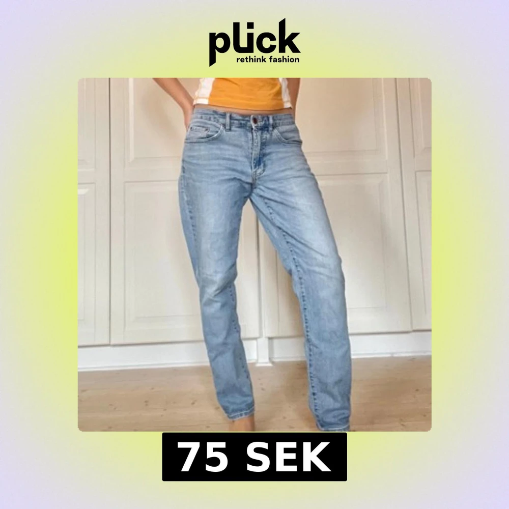 Säljer ett par ljusblå jeans med klassisk femficksdesign och normal passform. Jeansen har rak siluett, låg midja eller medel beroende på hur du vill att de ska sitta⭐️