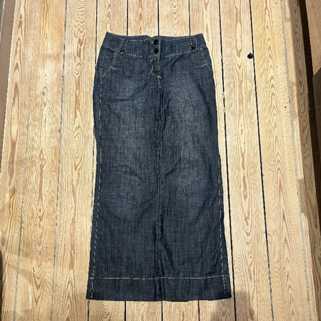 Mörkblå oversized tyg byxor! Storlek L, oanvända. Längd: 107cm midja: 42cm benöppning: 28cm