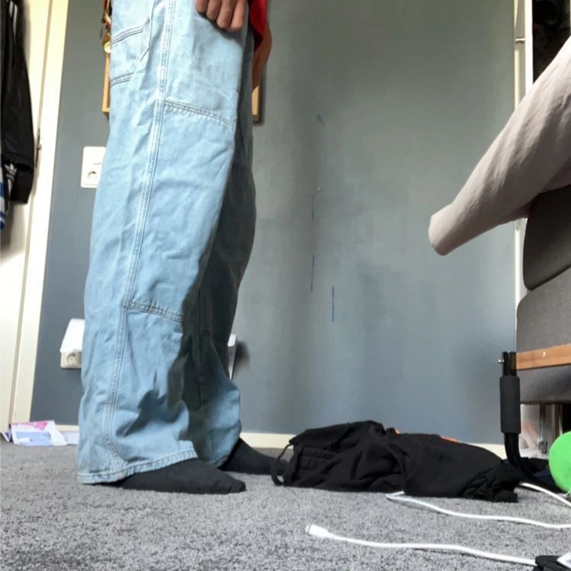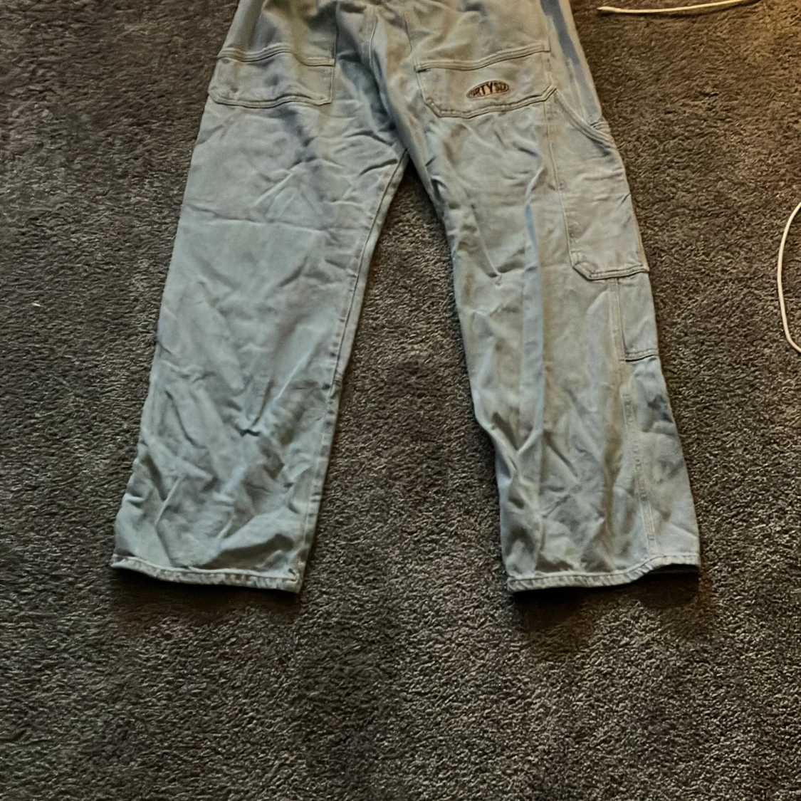Ett par district fortysix byxor jag säljer i storlek small. Byxorna funkar för folk som är mellan 175- 183cm långa. Midjan funkar nästan för alla eftersom den är töjbar.