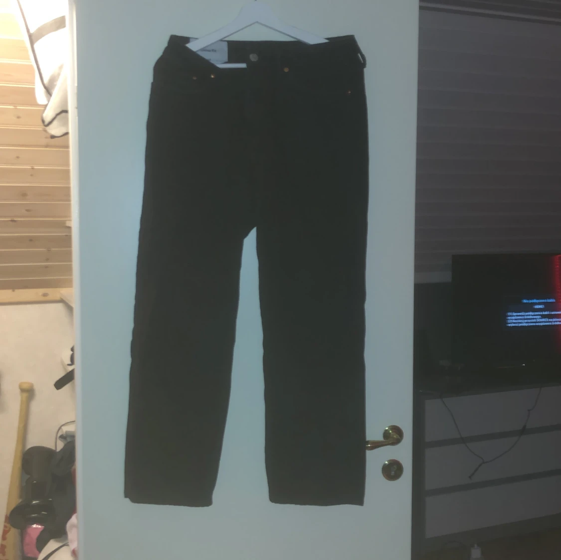 Det här är ett par hel svarta jeans från hm storlek 29/30 (baggyjeans ) gamla priset är 599 som du ser i andra bilder så är dom inte slitna alls vill du ha mer bilder kan du be om det. Dom är använda en gång