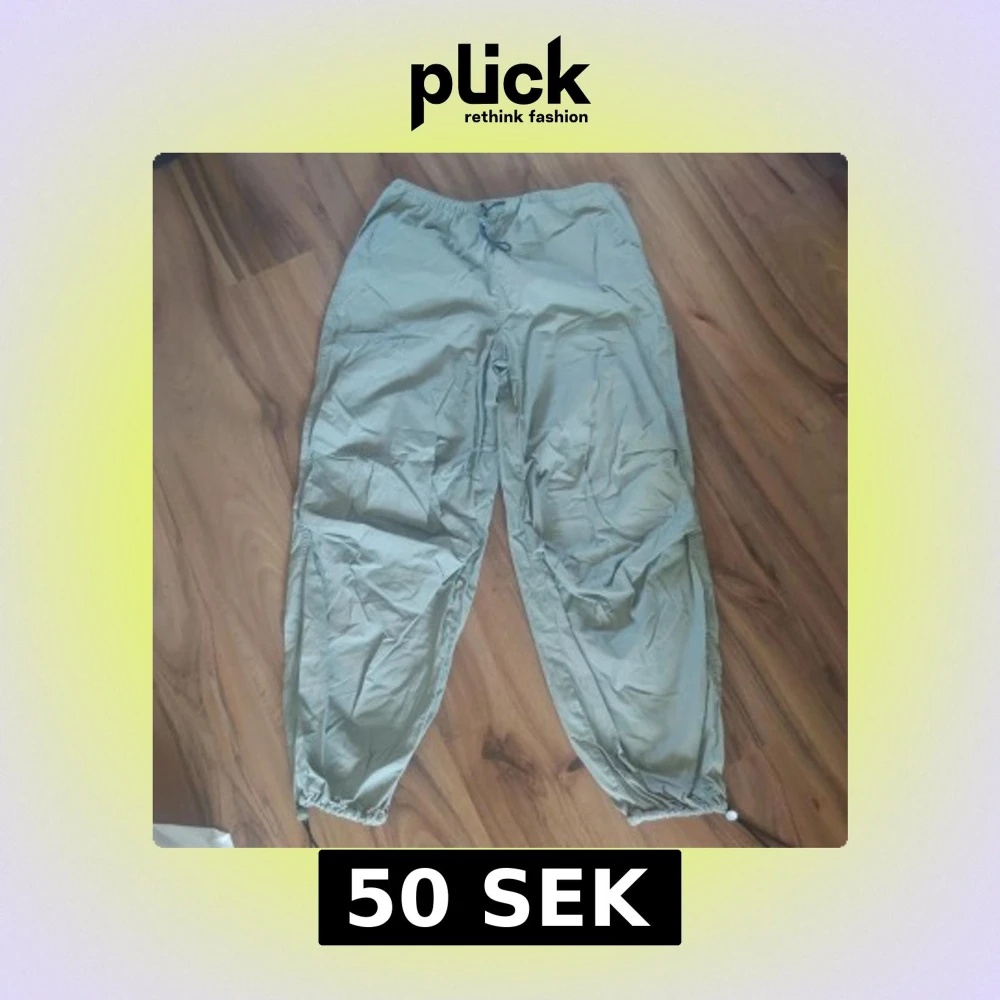 Snygga ljusgröna täckbyxor från H&M Divided i storlek XS. Byxorna har elastisk midja och snörning både i midjan och vid bensluten för en skön passform. Perfekta för chill dagar eller utomhusaktiviteter. Materialet är lätt och känns bekvämt mot huden.