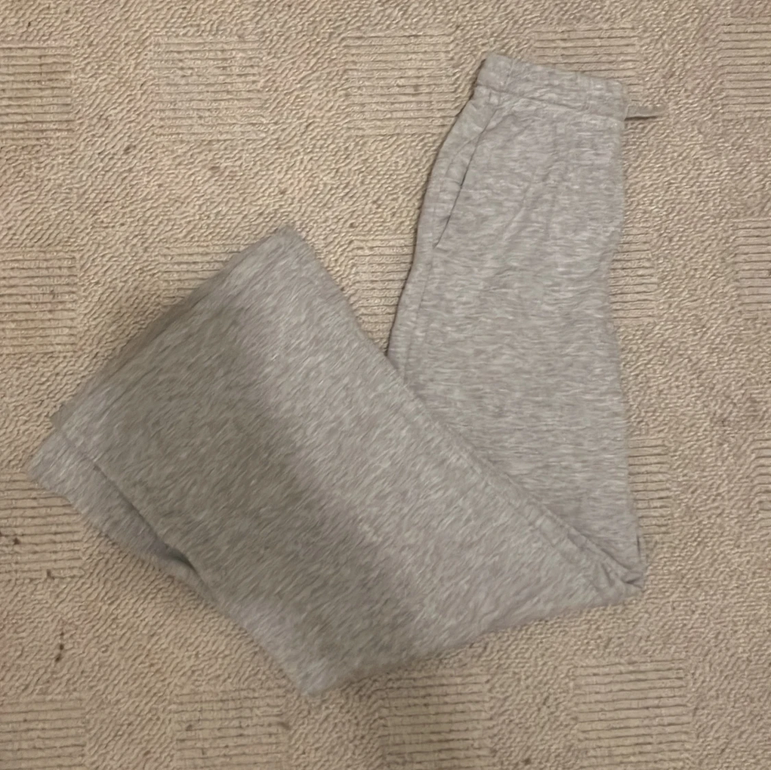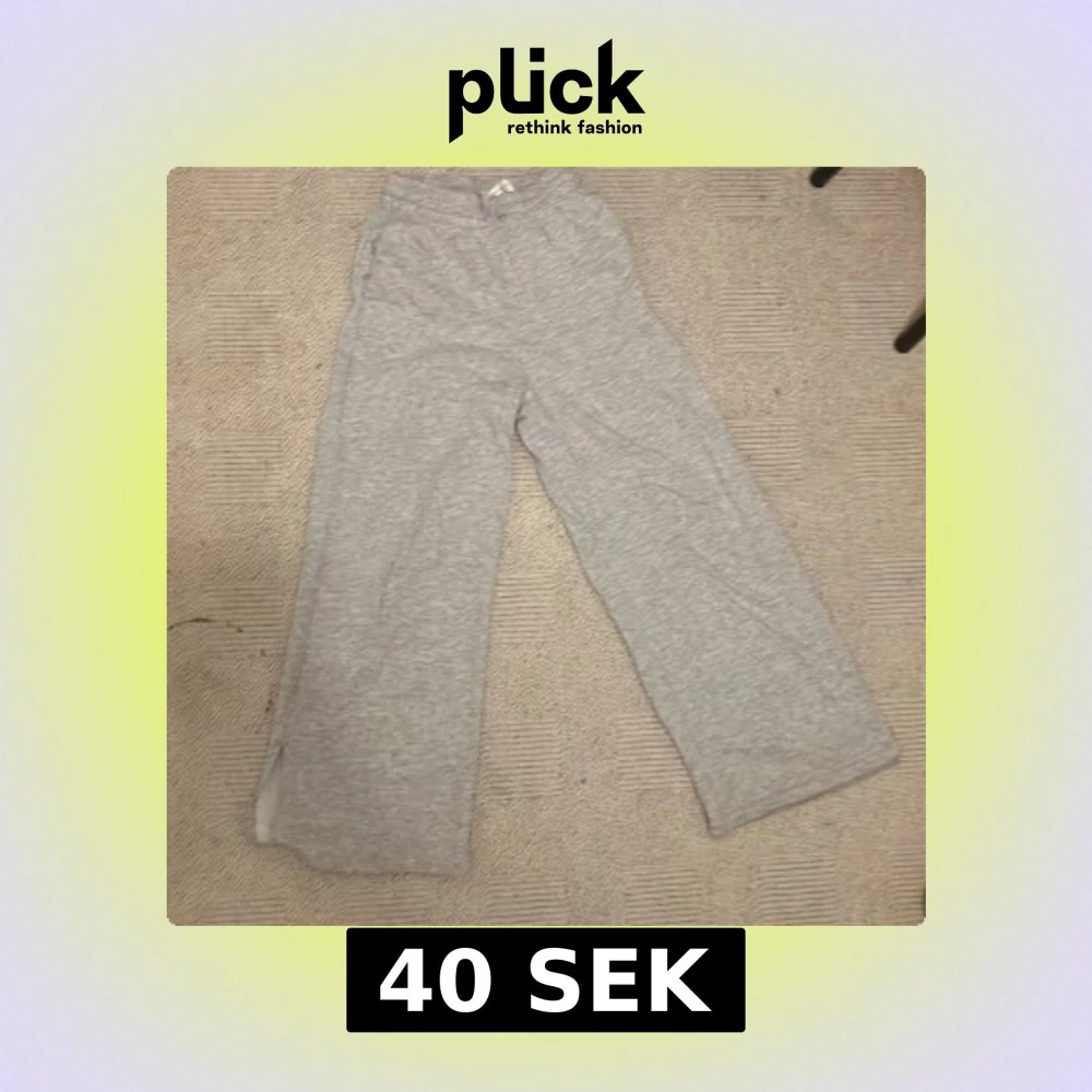 Superbekväma grå mjukisbyxor från H&M i wide fit-modell. Byxorna har resår i midjan och är tillverkade i en mjuk bomulls- och polyesterblandning. Perfekta för chill dagar och har en avslappnad look med raka, vida ben.