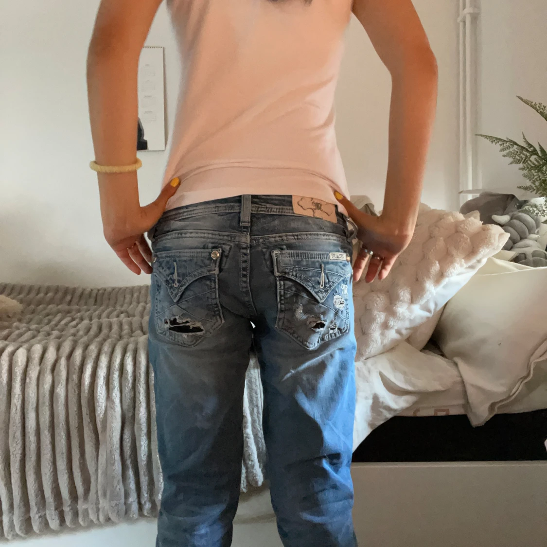 Säljer ett par blåa missme, har lite slitningar på bakfickorna som gör den mer detaljerad. Super fin har klippt längst nere. Dom är köpta för 1399 och har inte blivit andvänd enenda gång! Jag är 161,5 och längden passsr perfekt i längd. Inbenslängd: 73 cm Midjemått: 37,5 cm X2. Skulle jätte gärna möttas!🫶🏼💞