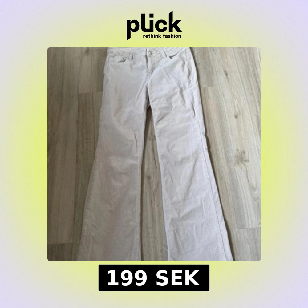 Snygga beiga manchesterbyxor från h&m med klassisk passform och bootcut. Byxorna har normal midja och stängs med dragkedja och knapp. Perfekta för en stilren look!