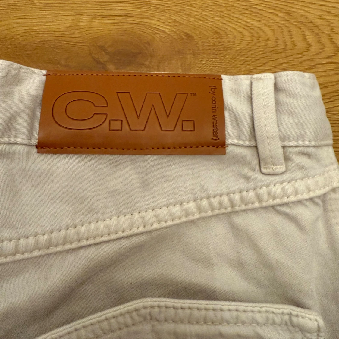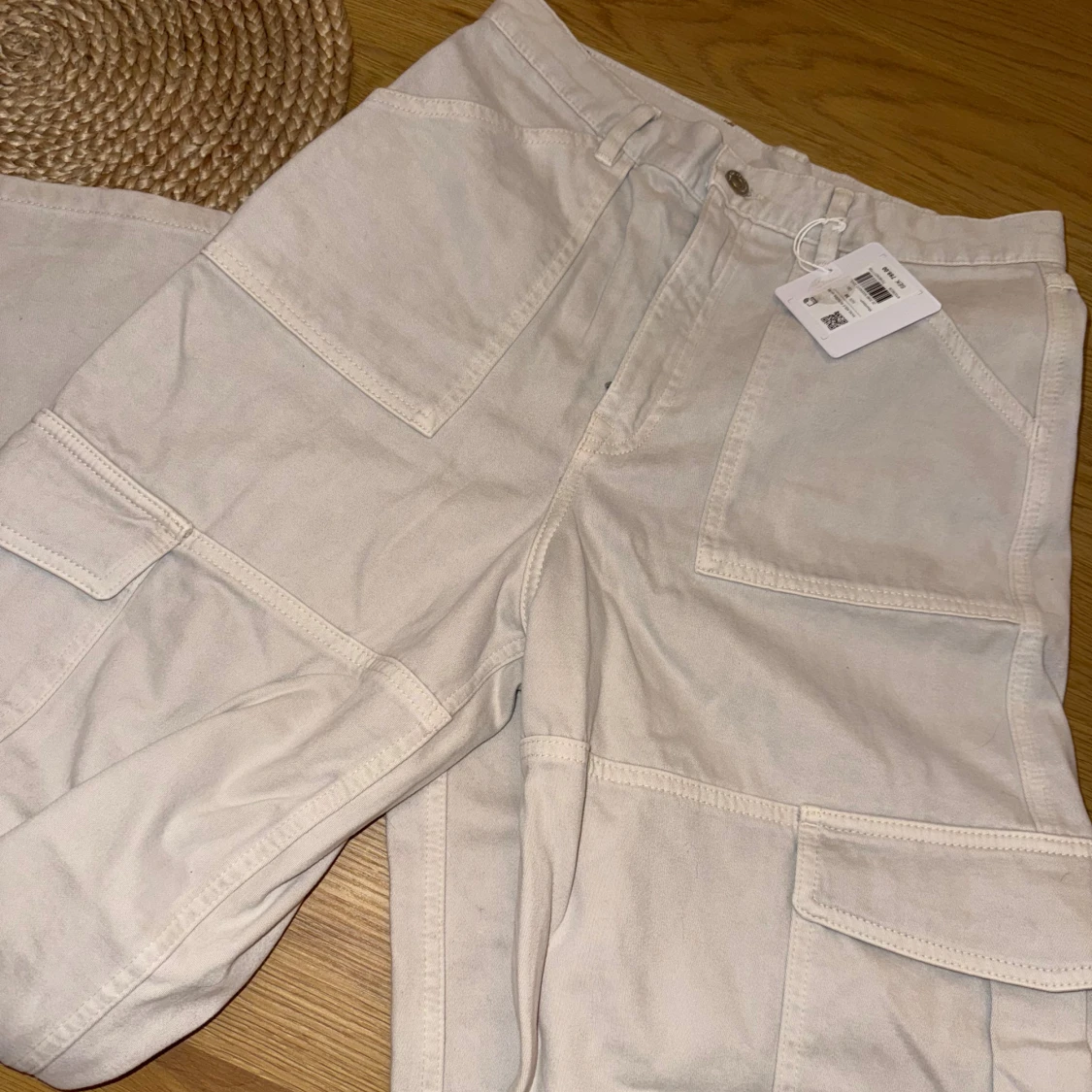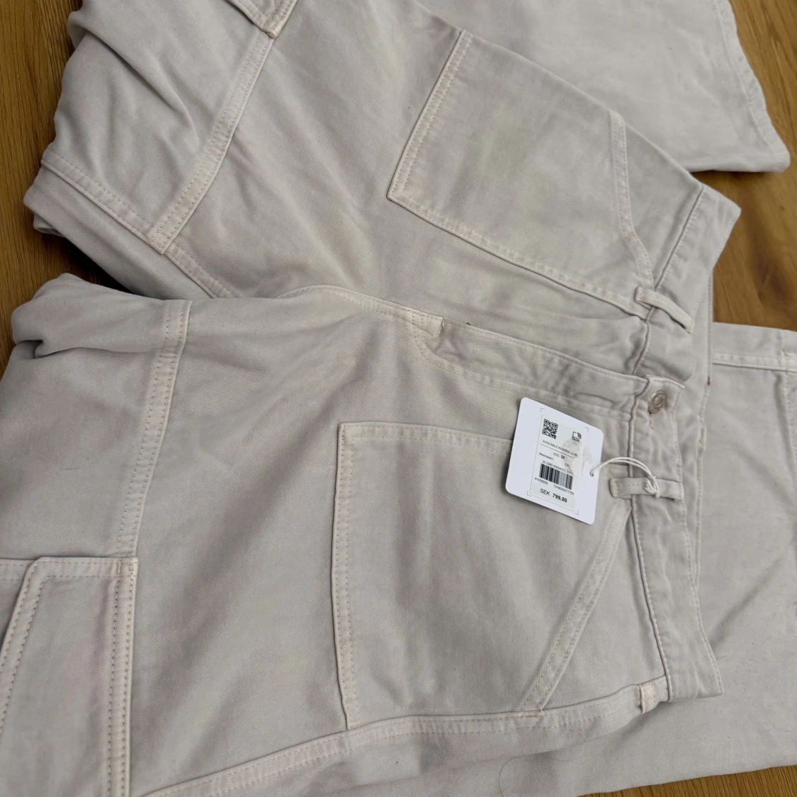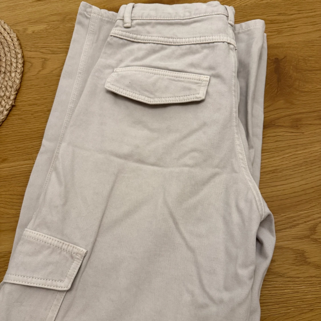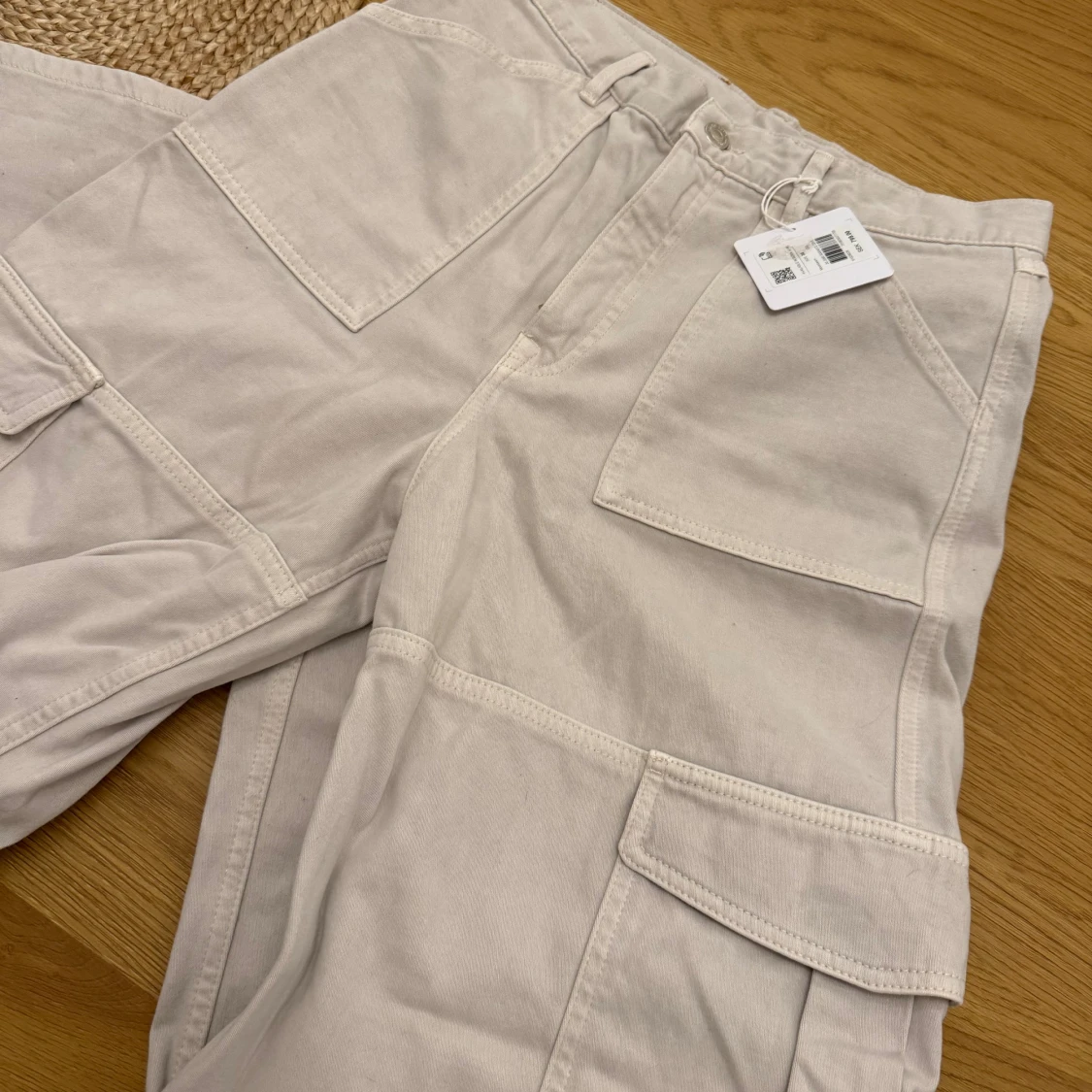Stilrena cargopants från Carin Wester i en superfin beige färg. Byxorna har flera fickor fram på benen och bak, samt bälteshällor och klassisk knappstängning. Perfekta för en avslappnad och trendig look. Oanvända med prislapp kvar! Nypris 800kr🩷