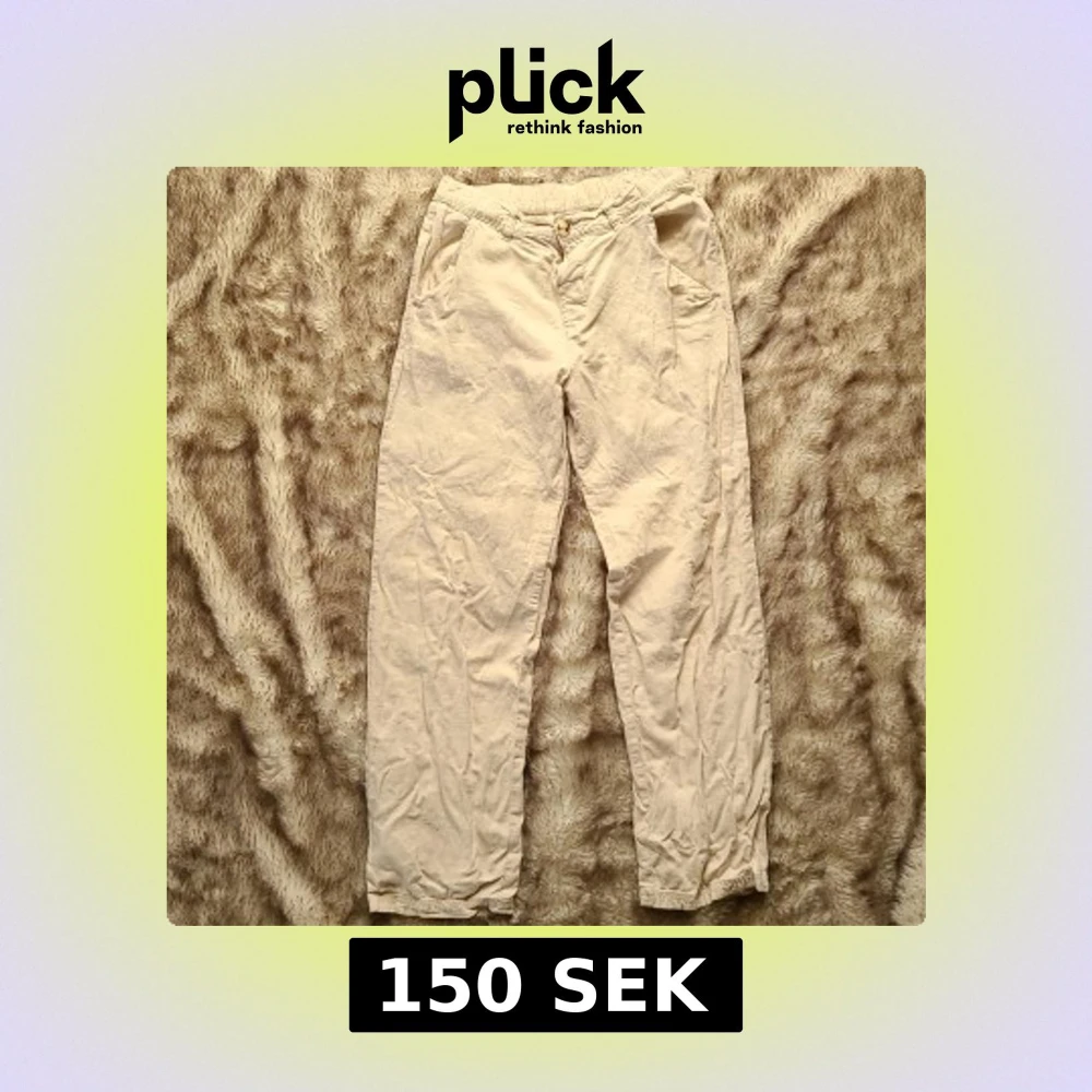 Snygga beiga byxor från Kappahl i storlek 170. 55% lin 45% Bomull. De har elastisk midja bak, knapp och dragkedja framtill samt sidfickor. Byxorna är raka i modellen och tillverkade i ett mjukt tyg som känns skönt mot huden.