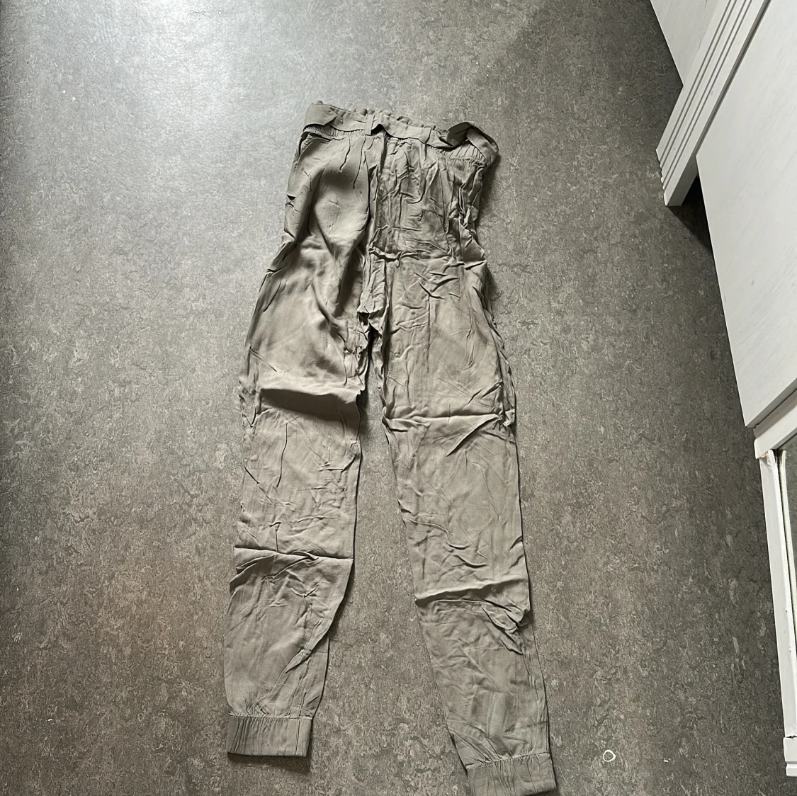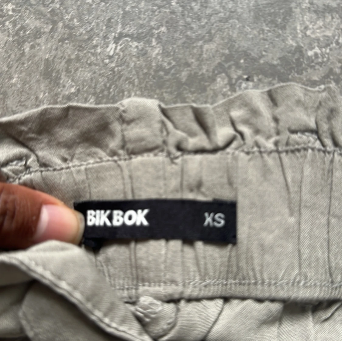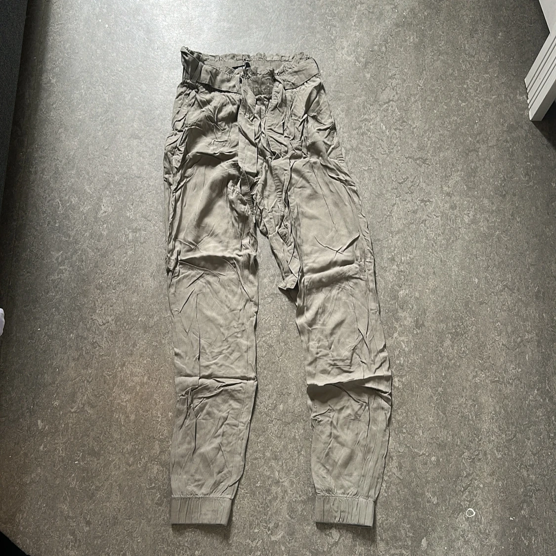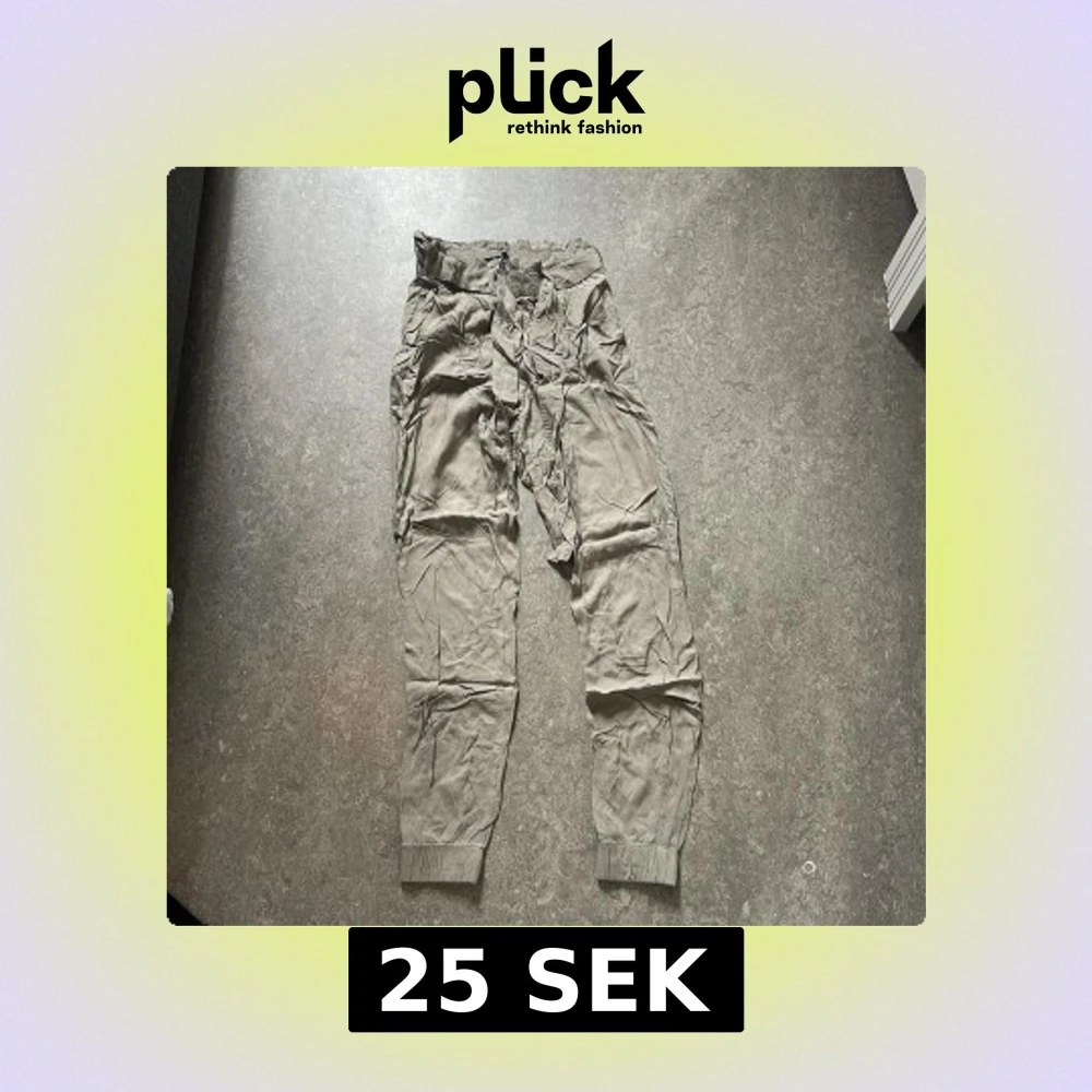 Snygga beiga byxor från Bik Bok i storlek XS. De har resår i midjan, knytband och muddar vid bensluten. Lätta och sköna med avslappnad passform, perfekta för en chill look. Materialet känns mjukt och luftigt.