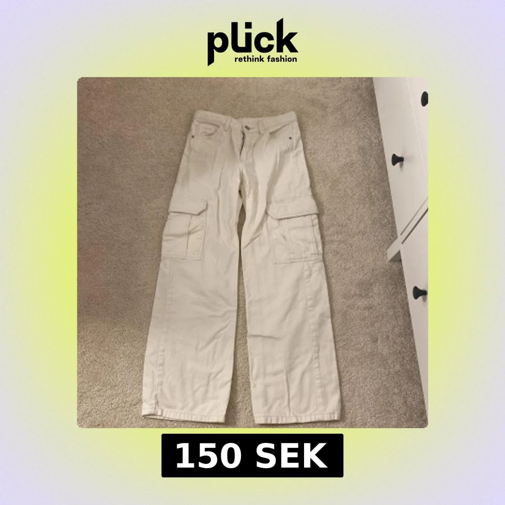 Säljer ett par beiga cargopants med raka ben och stora fickor på sidorna. Byxorna har normal passform och är perfekta för en avslappnad stil. Tillverkade i bomull för en skön känsla hela dagen.