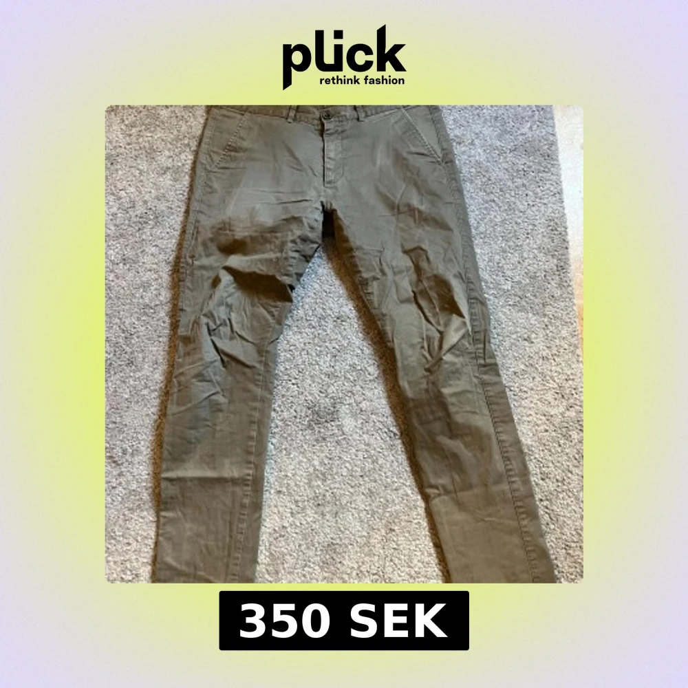 Säljer ett par klassiska beiga chinos från Dr Denim. Byxorna har normal passform, snedställda fickor fram och stängs med knapp och dragkedja. Perfekta till vardags och lätta att matcha med olika stilar.