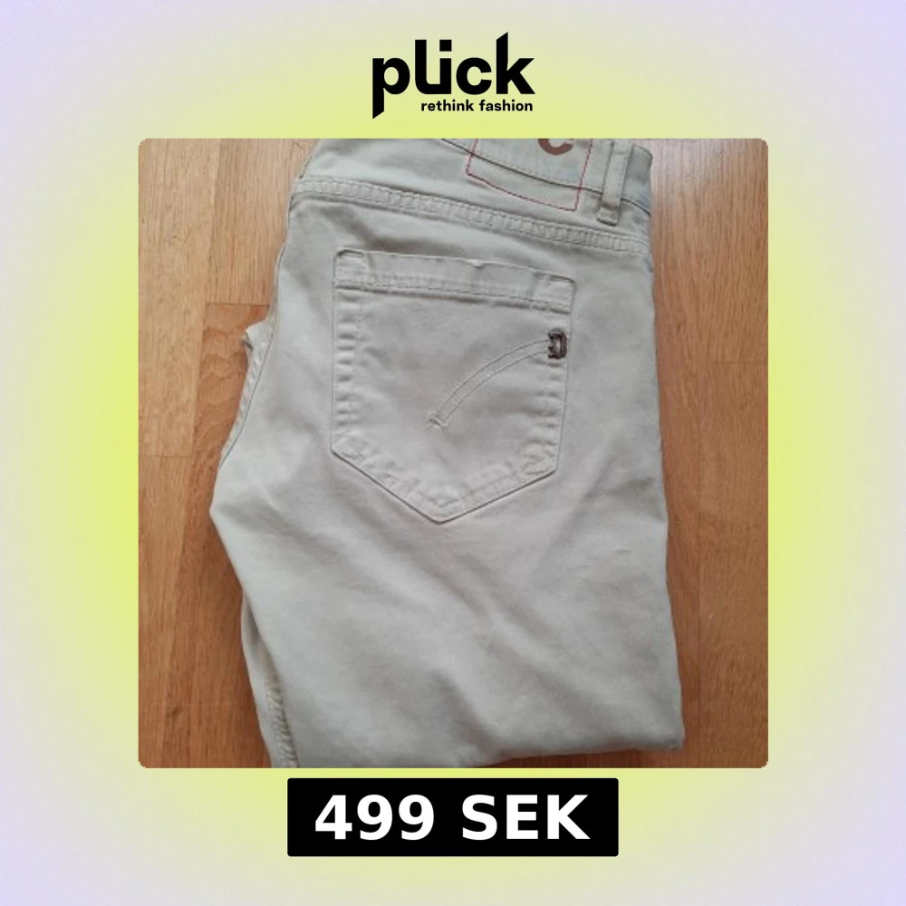 Snygga beige jeansbyxor från Dondup i modellen george⚜️. Byxorna är i storlek 31 och har en slim fit passform📏. Byxorna är tillverkade i bommul och är väldigt sköna och perfekta för en stilren look med fem fickor och knappgylf. Vid frågor eller prisförslag får du mer än gärna skicka ett medelande🤝📬