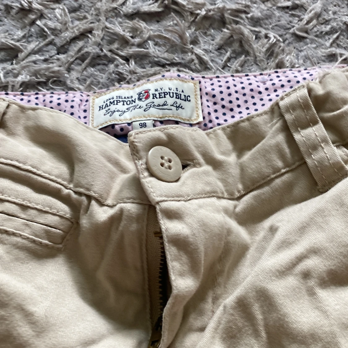 Beiga jeans från Hampton republik i storlek 98. Aldrig använda. Bild 1: framsidan Bild 2: baksidan