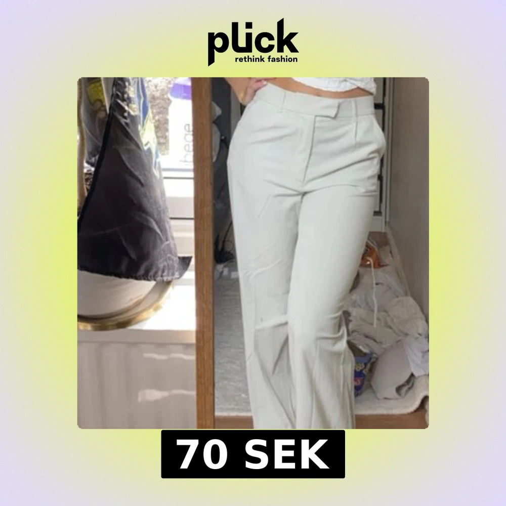 Snygga beiga kostymbyxor med hög midja och raka, vida ben. Materialet är mjukt och är endast använda en gång