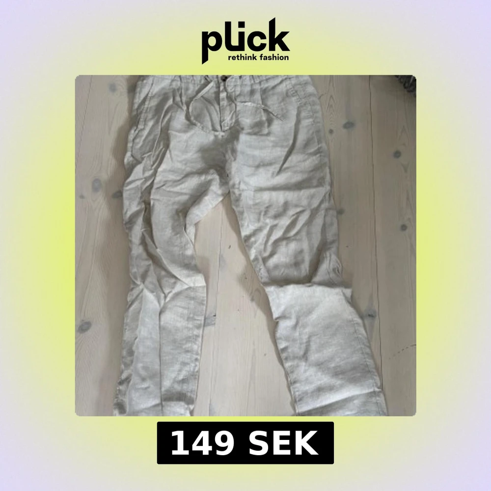 Snygga beiga linnebyxor från Bondelid med avslappnad passform och dragsko i midjan. Perfekta för varma dagar med sin lätta känsla och klassiska look. Byxorna har fickor på sidorna och stängs med knapp och dragkedja.