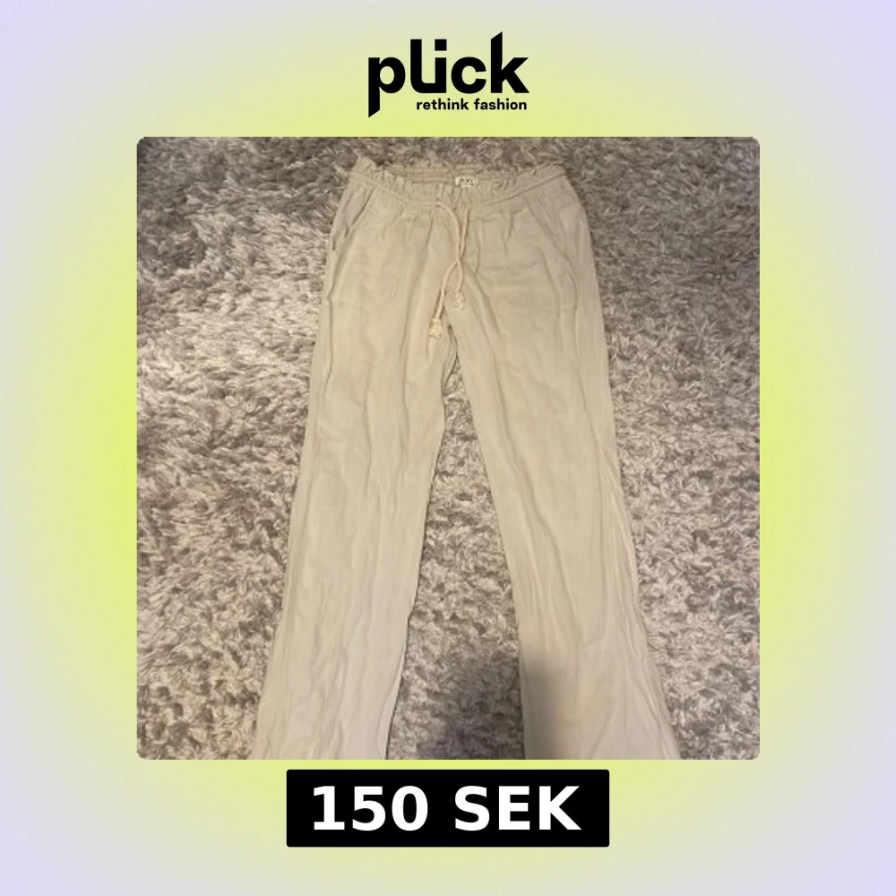 Snygga beiga linnebyxor från Roxy med elastisk midja och snörning framtill. Byxorna har raka ben, sidfickor och bakfickor med broderad logga. Perfekta för en chill och avslappnad stil under varmare dagar. 110kr+frakt