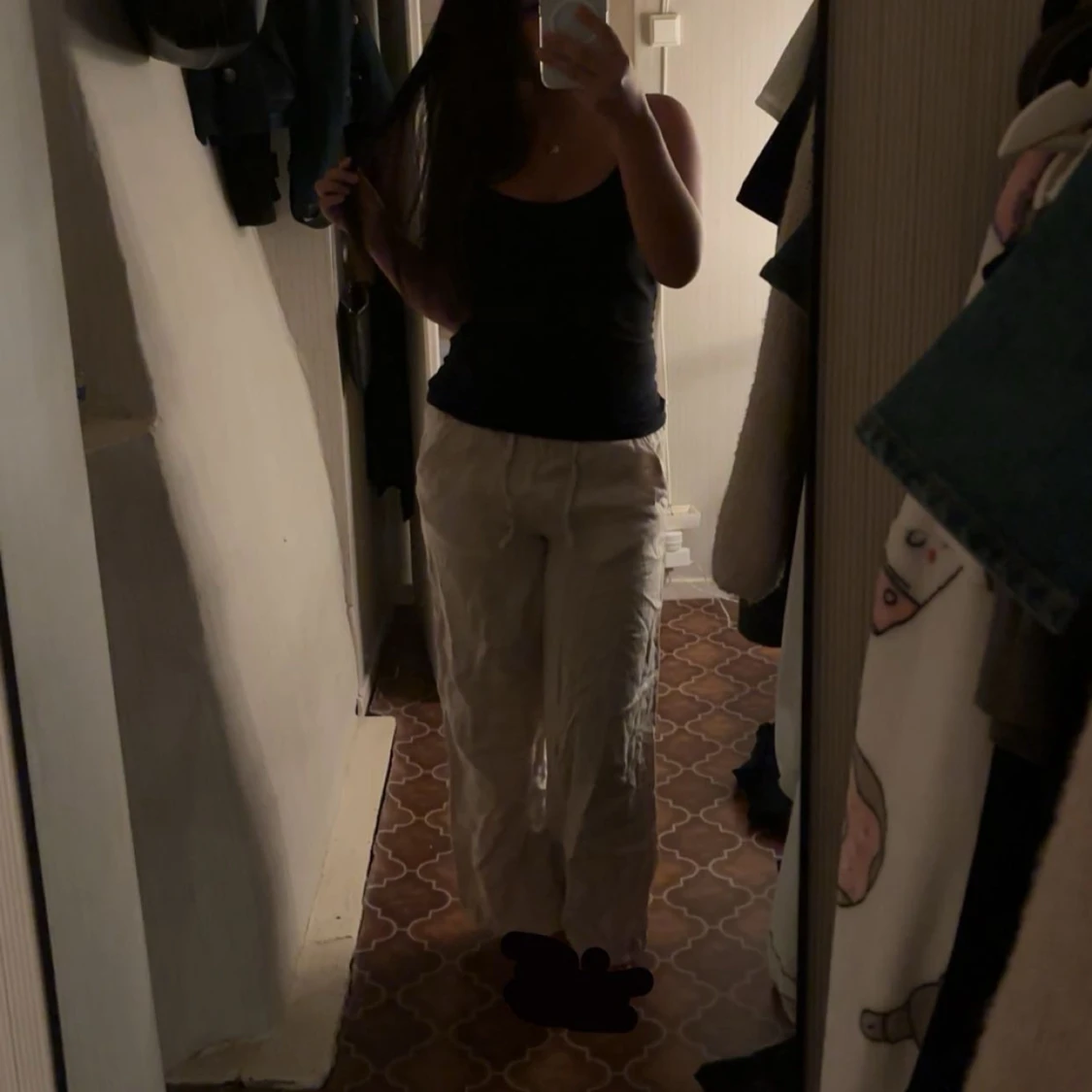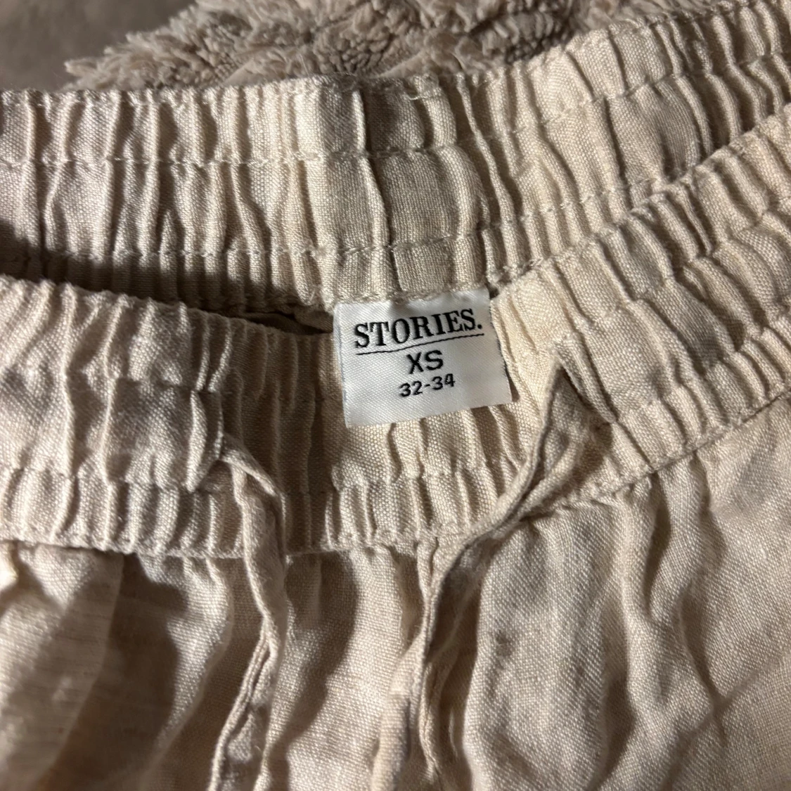 Säljer ett par beiga linnebyxor från Stories i storlek XS. Byxorna har resår i midjan och är raka i modellen med avslappnad passform. Om intresse finns kan visas mer bilder för se passformen♥️