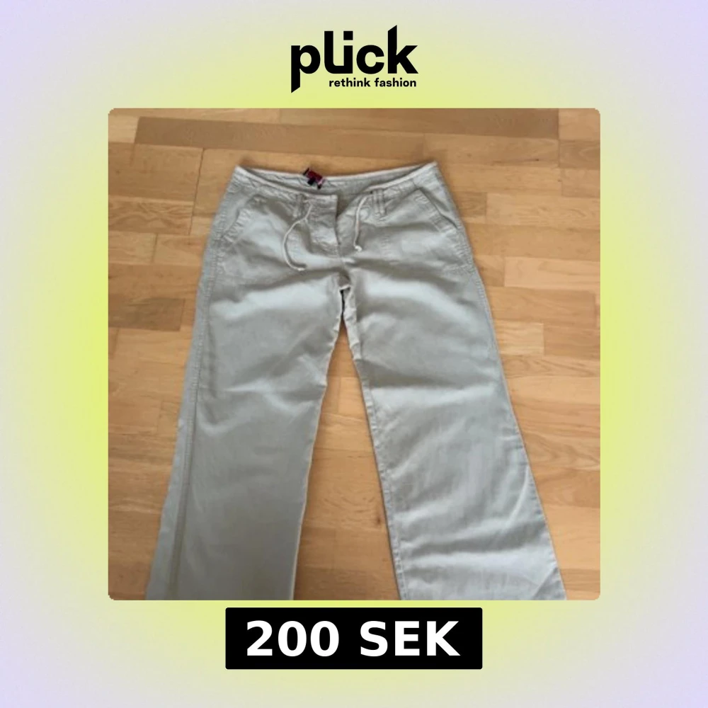 Snygga beiga linnebyxor med raka ben och snörning i midjan. Byxorna har fickor fram och bak, samt knappar på bakfickorna. Perfekta för en avslappnad och stilren look. Sjukt sköna!