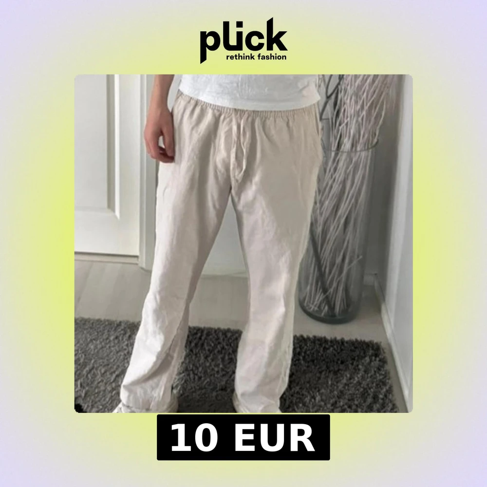 Snygga och luftiga beiga linnebyxor med resår och snörning i midjan. Byxorna har raka ben och en avslappnad passform, perfekta för varma dagar. Materialet är linne vilket gör dem svala och bekväma att bära.