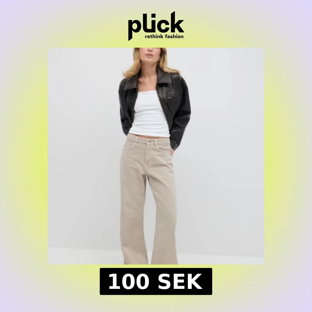 Beiga jeans från gina, lågmidjade och vida i benen. Inga defekter.