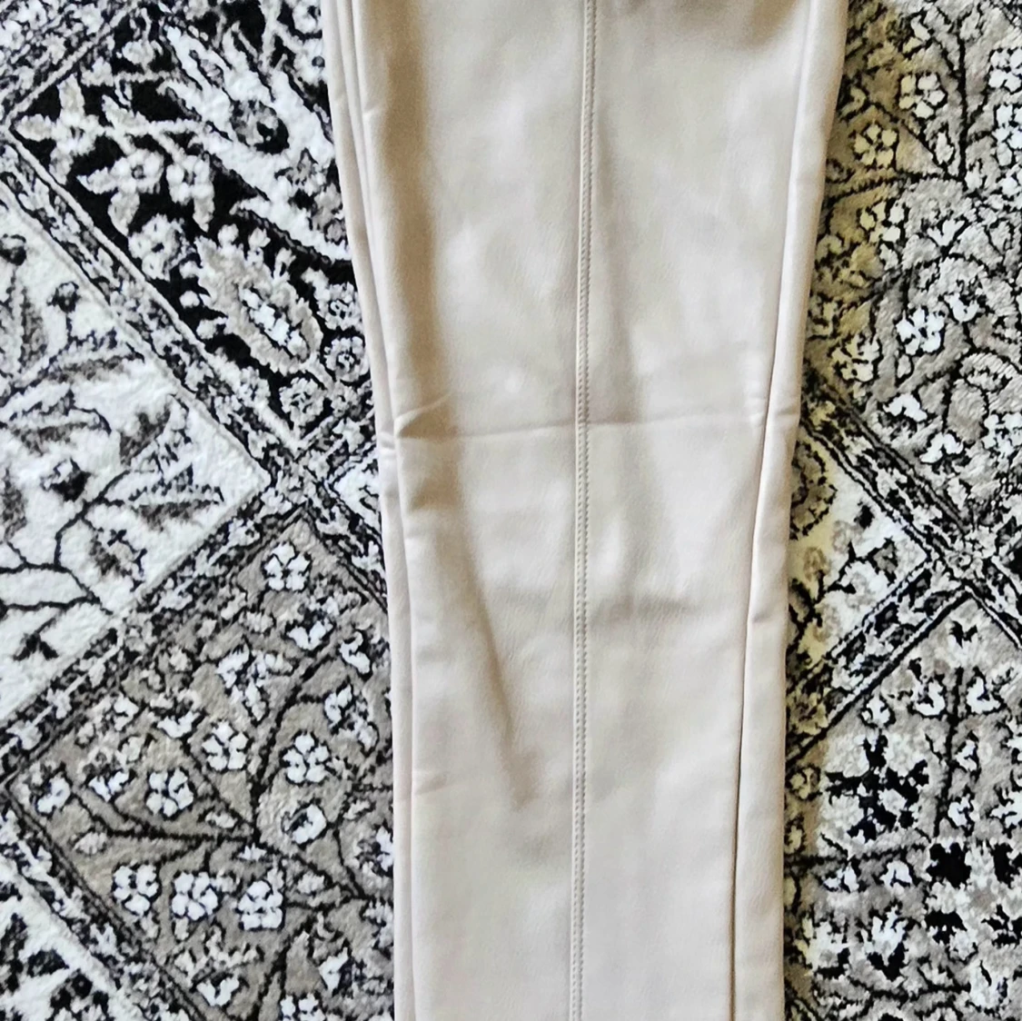 Snygga beiga skinnbyxor med hög midja och dragkedja i sidan. Byxorna har raka ben och en stilren söm längs framsidan. Perfekta för dig som vill ha en trendig och clean look.