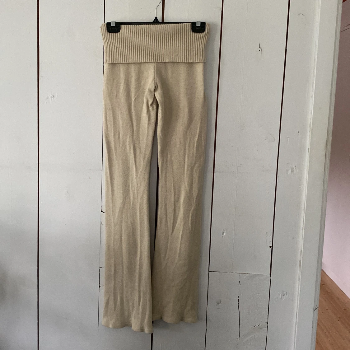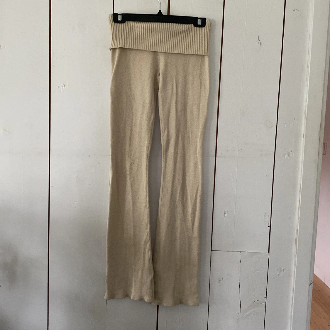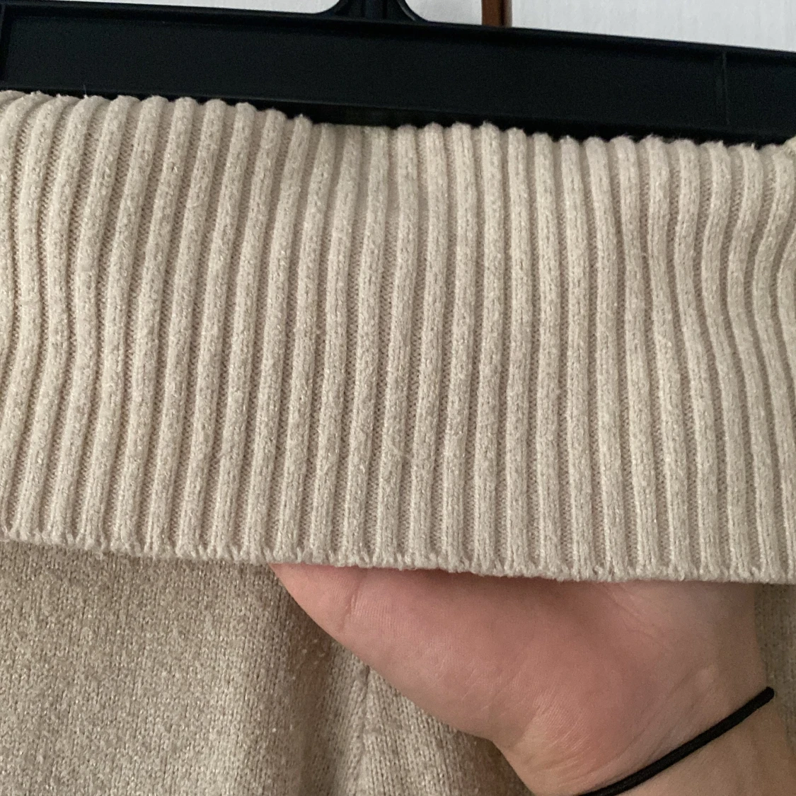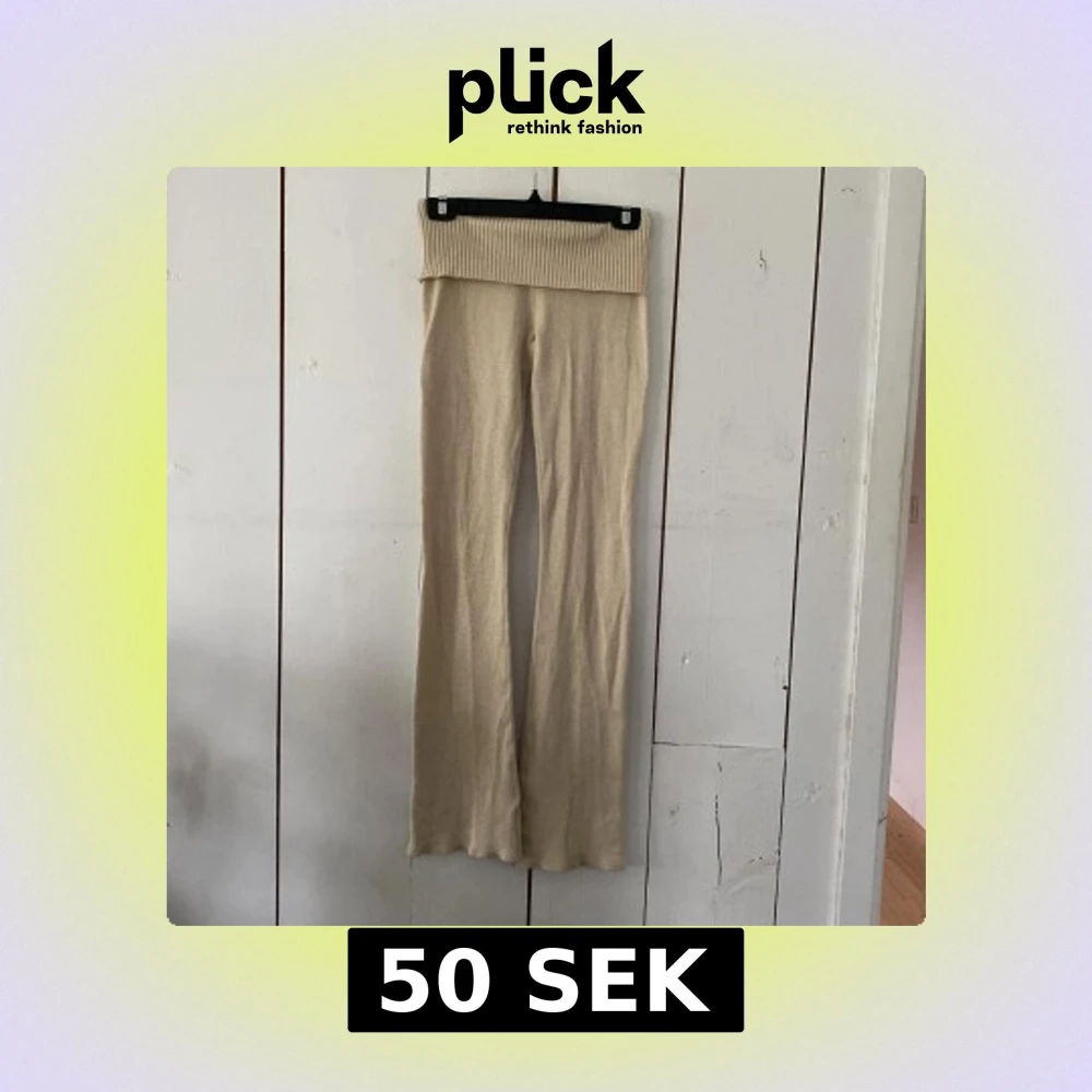 Mysiga beiga stickade byxor från Gina Tricot med bred ribbad midja som kan vikas ner. Byxorna har en rak och lite utsvängd passform, perfekta för en chill och avslappnad stil. Supermjuka och sköna att ha på sig hela dagen.