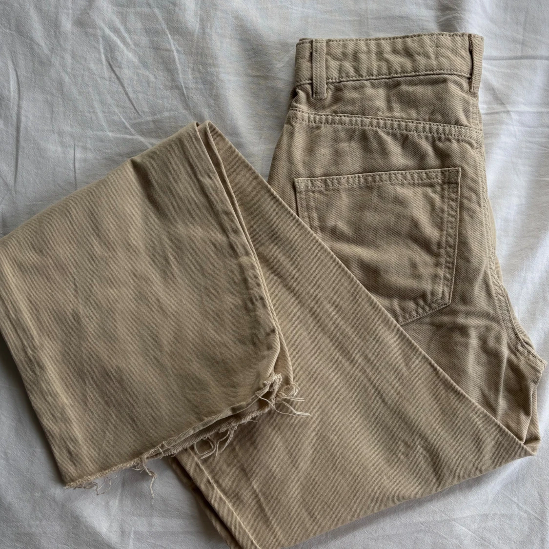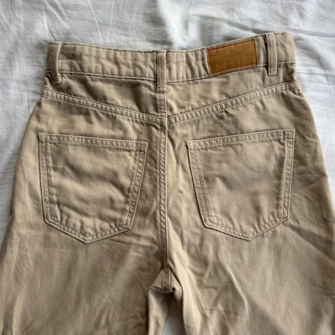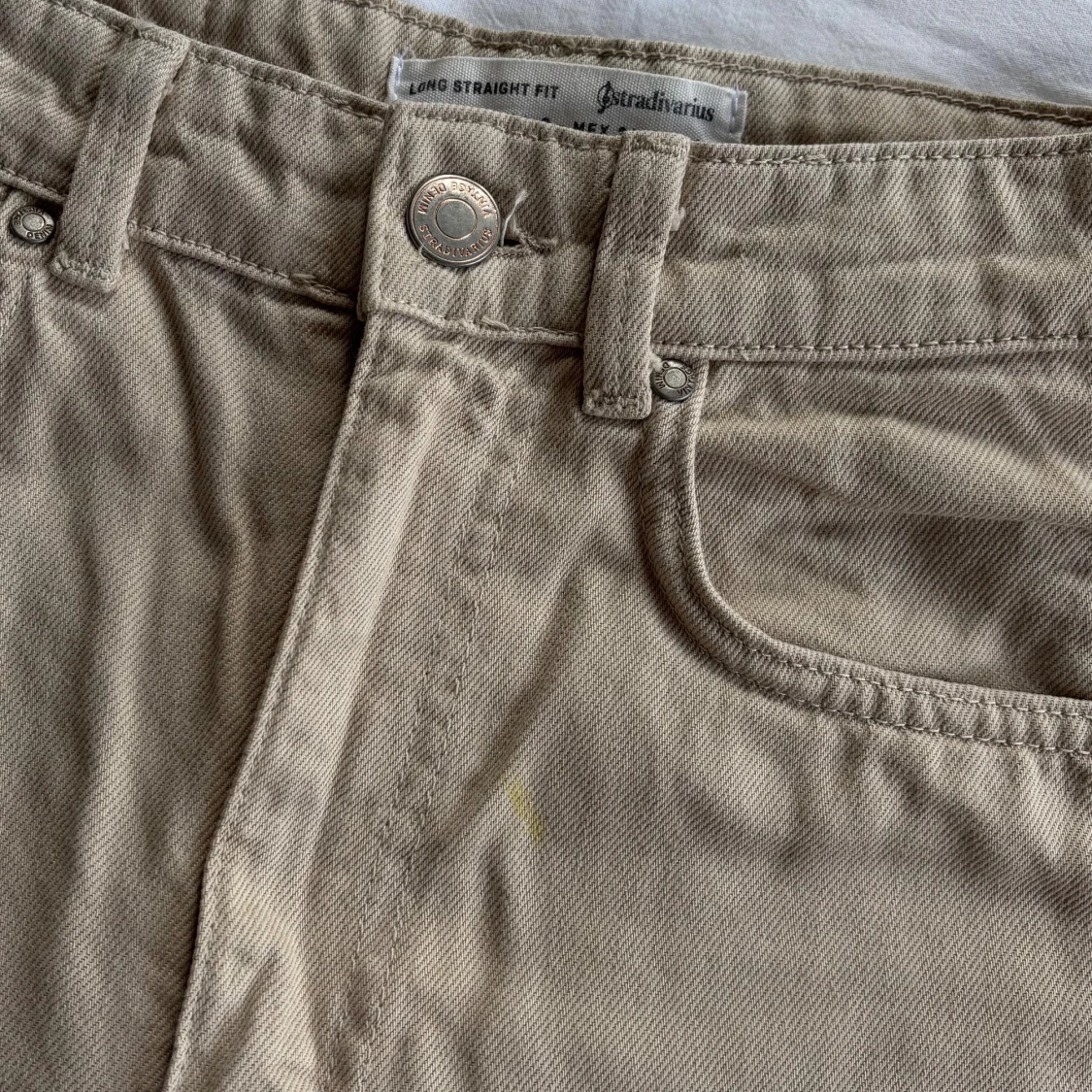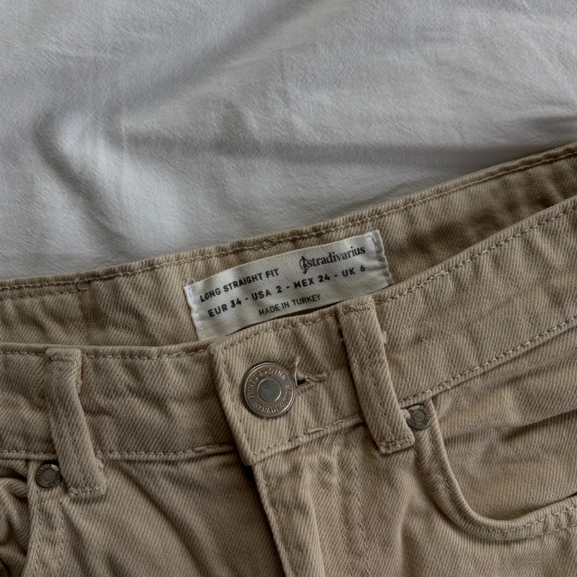 Beiga jeans från Stradivarius med long straight fit. Liten knappt synlig fläck ser på tredje bilden