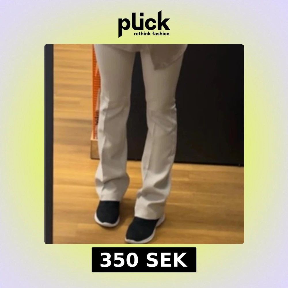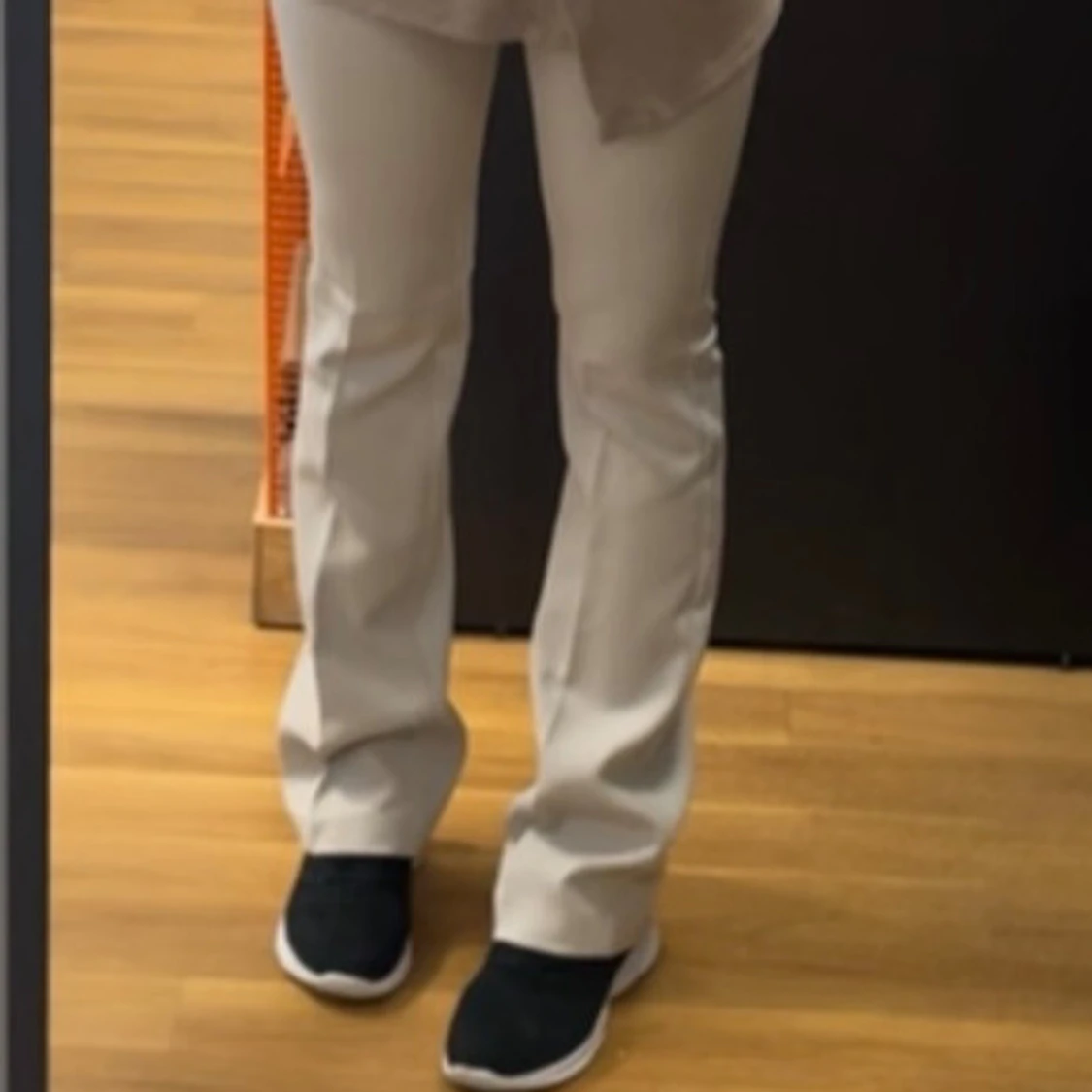 Snygga beiga bootcut byxor med klassisk passform och lätt utsvängda ben. Byxorna är tillverkade i mjukt bomullsmaterial och har en stilren look som passar perfekt till många olika outfits. Midjan är normal och färgen är ljusbeige.