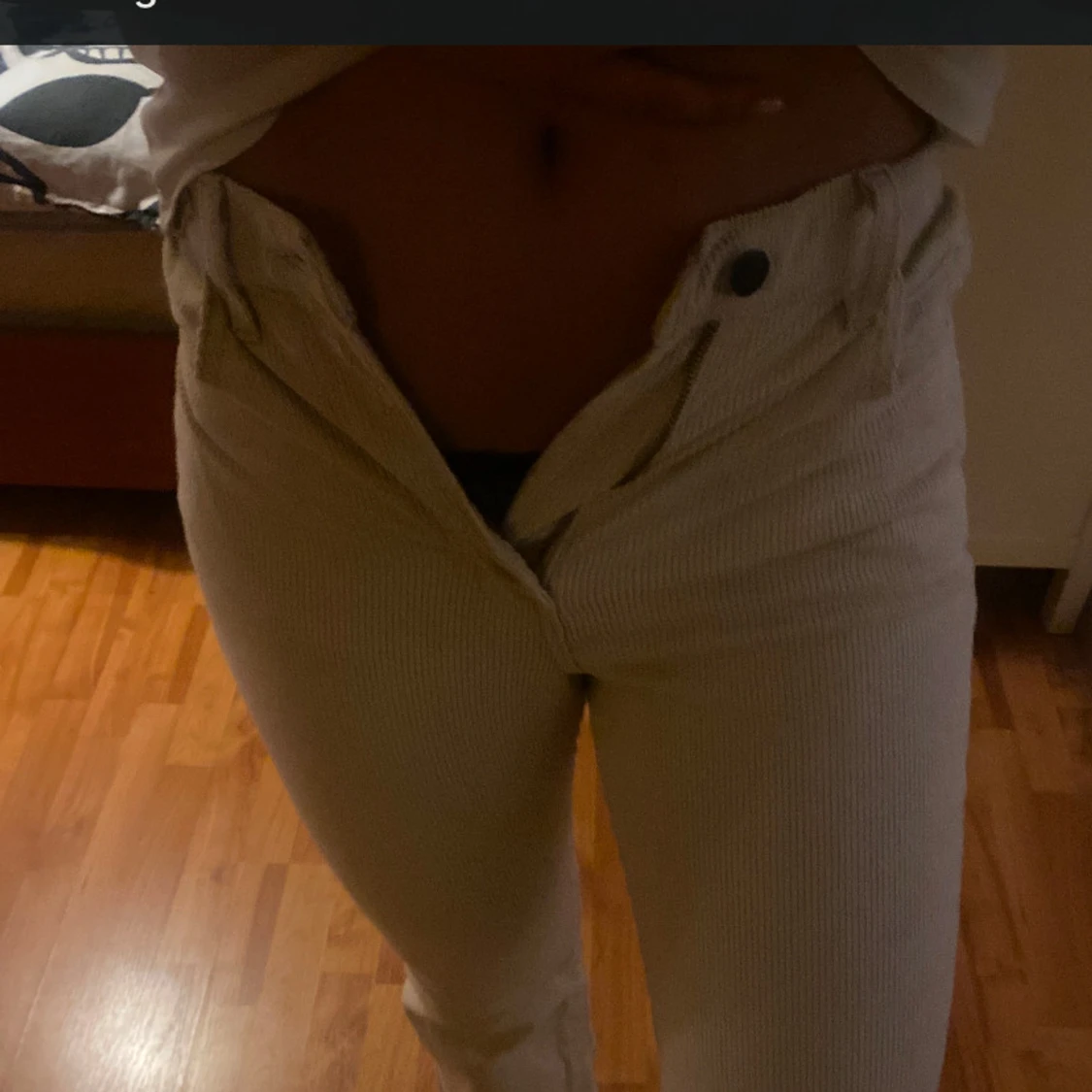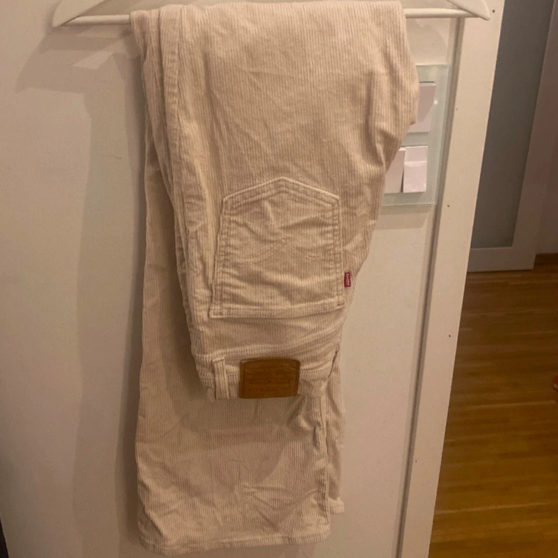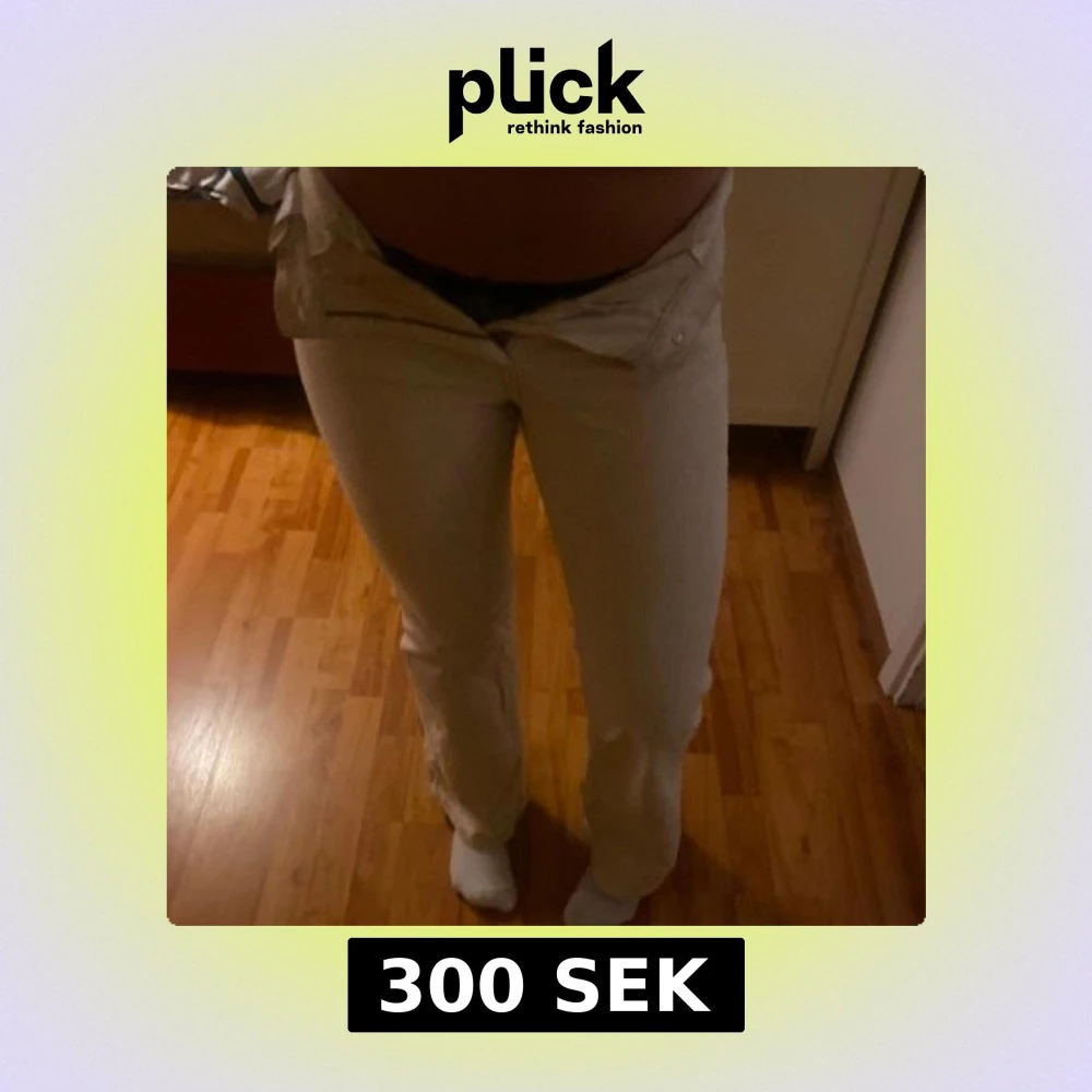 Snygga beige byxor med hög midja och utsvängda ben i 70-talsstil. Säljer då de tyvärr är för små för mig. ! DE ÄR HÖGMIDJADE MEN VIKT NER DOM! Jag är 177 för referens så de är ganska långa🫶 köpt på nk för 1300kr.