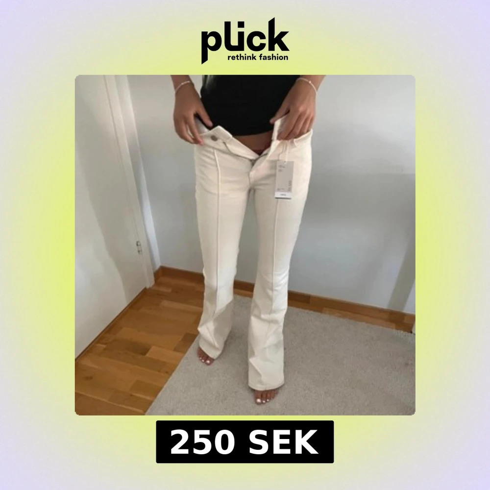 Snygga vita bootcut byxor med markerade pressveck framtill. Byxorna har hög midja och stängs med knapp och dragkedja. Perfekta för en clean och fräsch look 💓💓