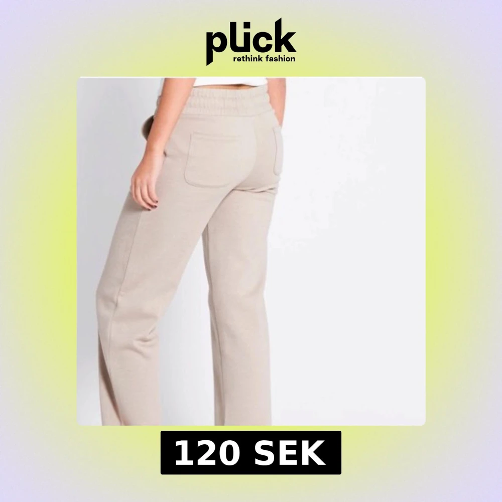 Snygga och bekväma beige/ bruna mjukisbyxor med elastisk midja och snörning. Byxorna har en avslappnad passform och praktiska fikor!